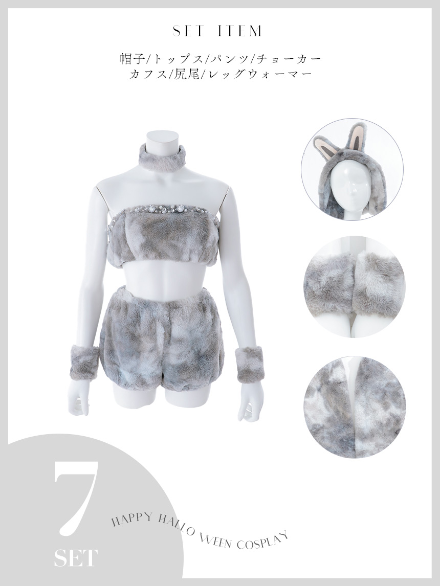 【即日発送】【ハロウィン】パステルもこもこバニー【コスプレ7点セット】【フリーサイズ/6カラー】[OF03] [HW-253-SB-dzwj-GY-25MA]