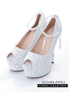 サイドの大きめビジューチェーンが目を惹くサンダル。