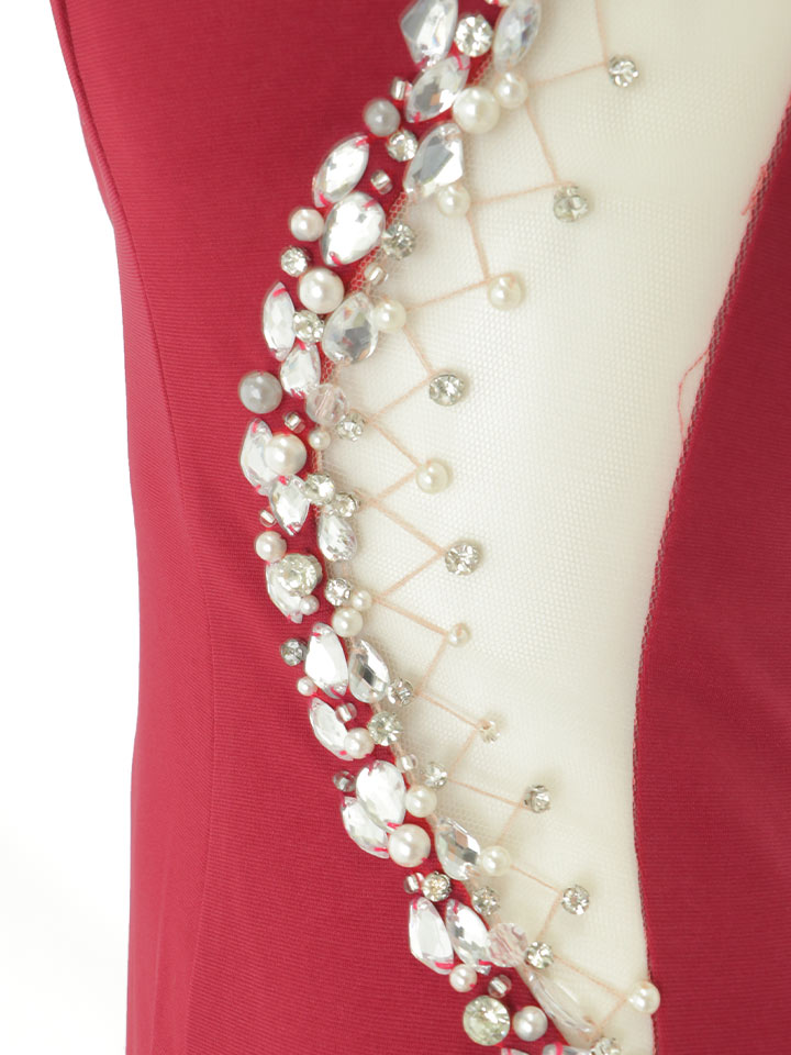 真優川咲・如月れい・ゆめ着用キャバドレス ウエストに施されたビジュー&パールが煌めき、