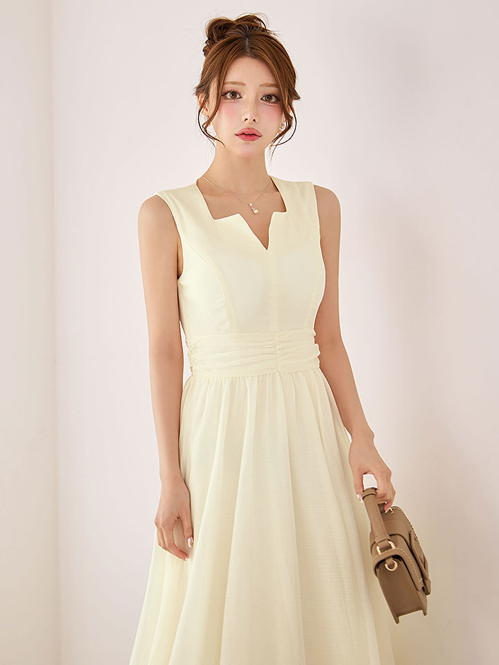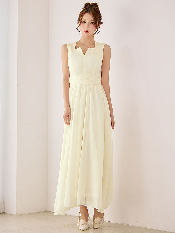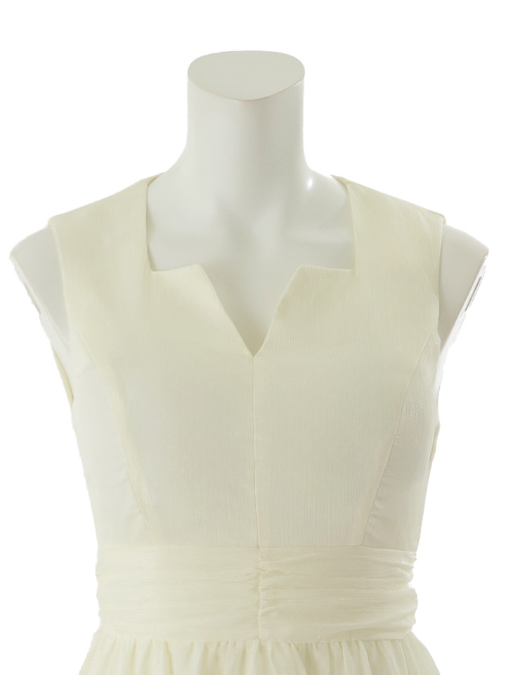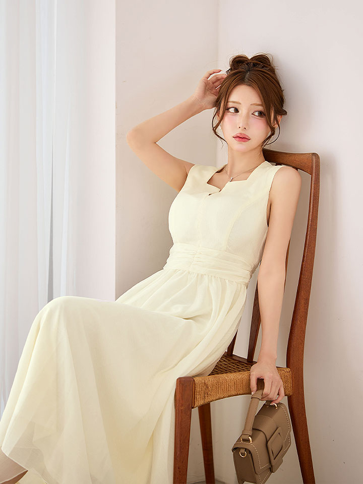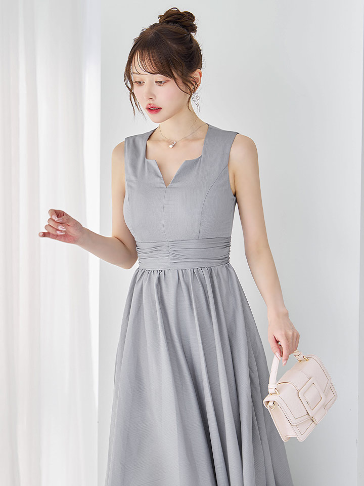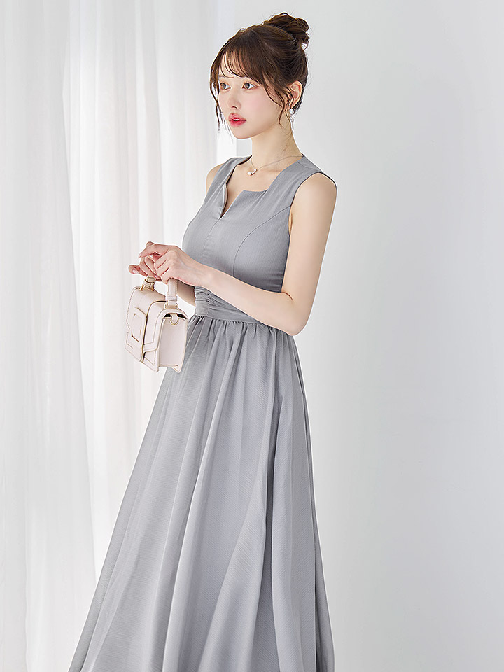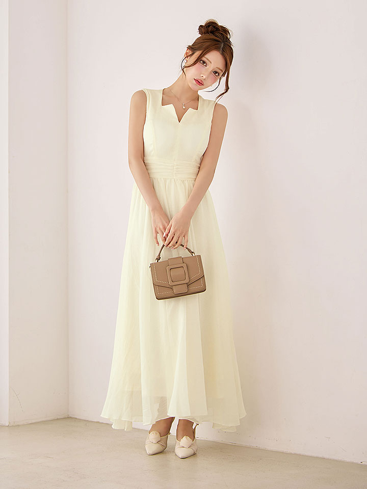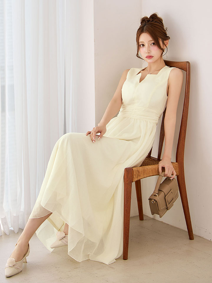 胸元にはさりげないカットを施し、上品さを残しつつ程よい抜け感を演出。