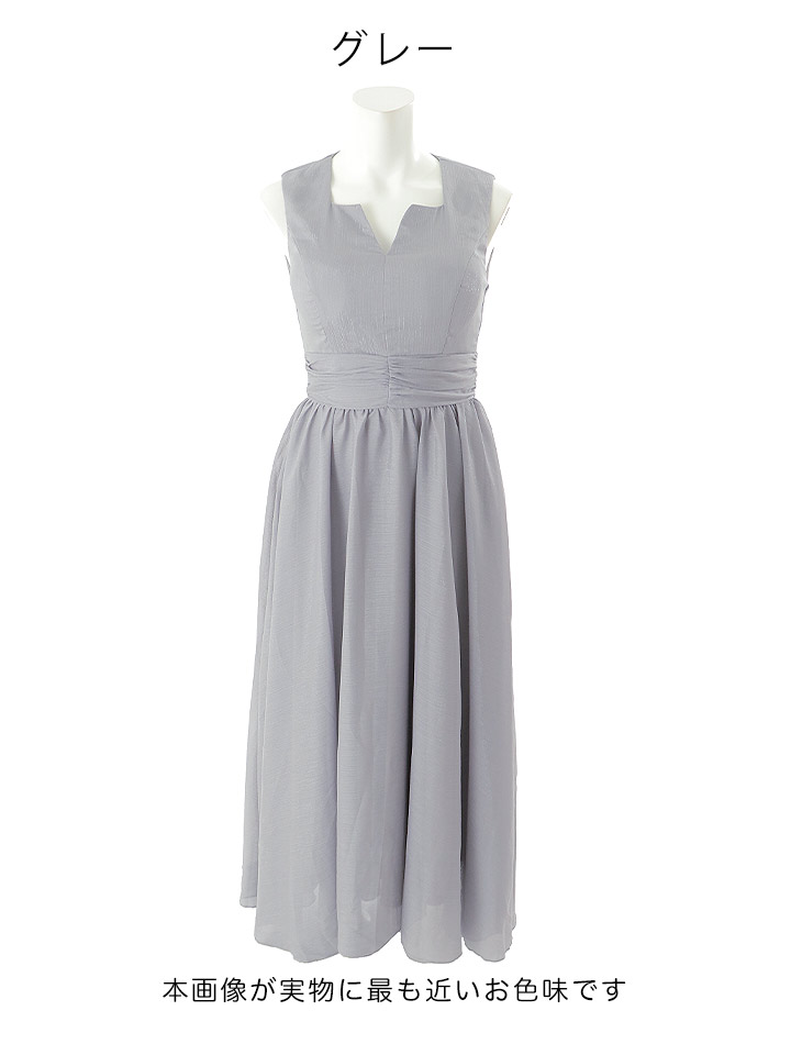 #グレー #アイボリー #ネクスト銀座 ゆめ #ももか着用 #ワンピースドレス ラメ(グリッター) #ノースリーブ #背中隠し(ブラOK) #Aライン・フレアスカート #上品・華やか・お姉さん系