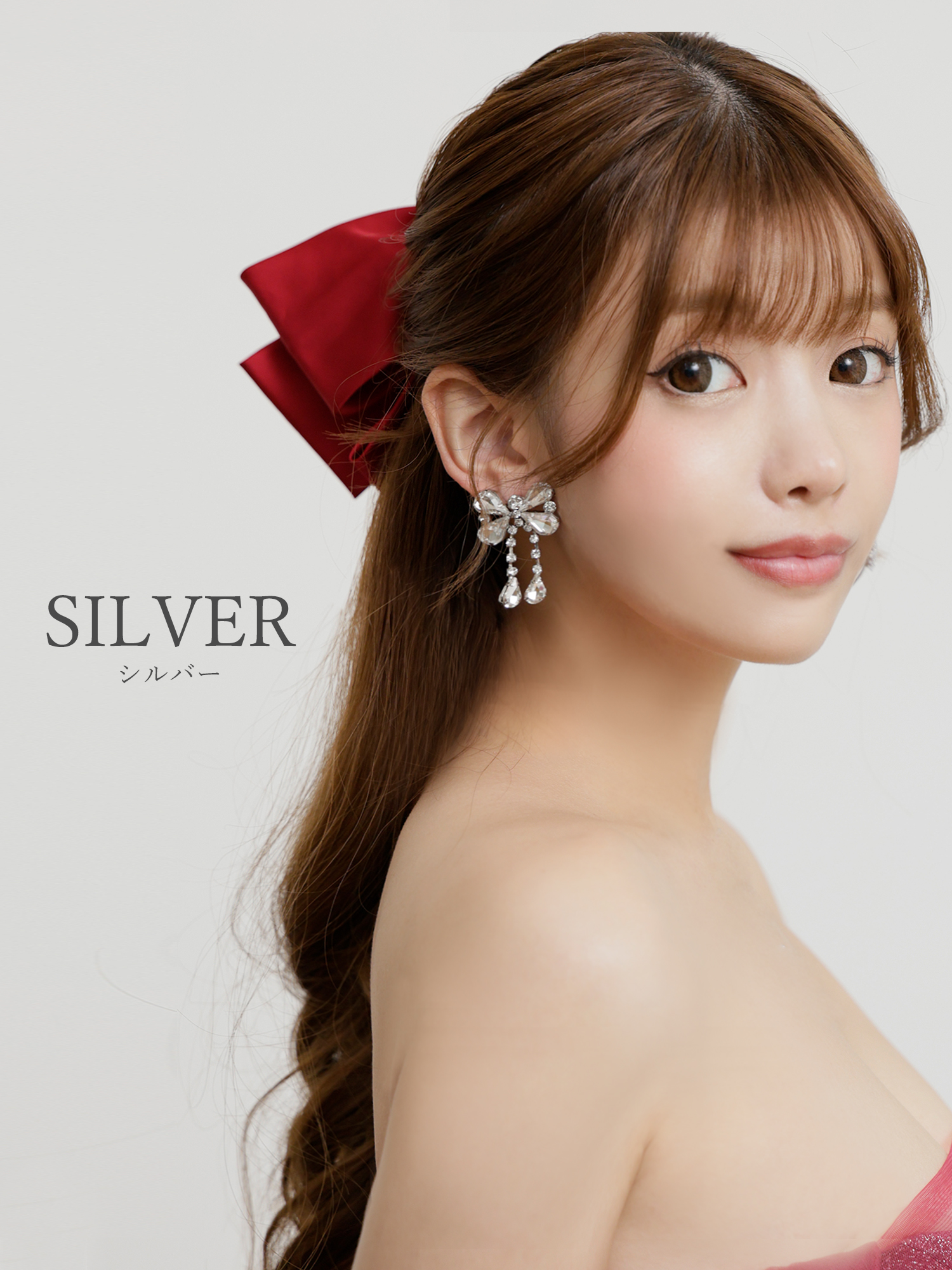 【アクセサリー:ピアス】【ANGEL R/エンジェルアール】リボンモチーフビジューピアス[OF02] [PI038BY-SV-F-2509]