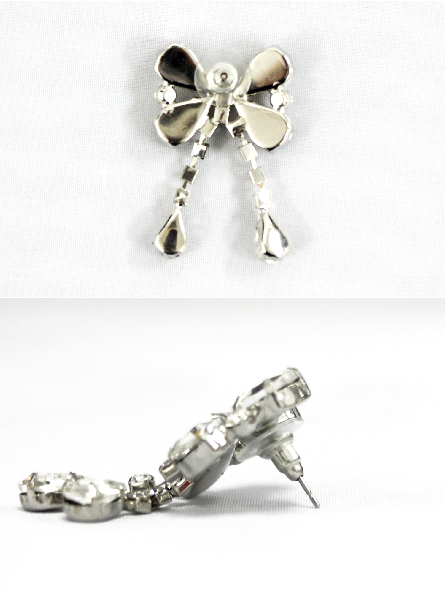 華やかなリボンモチーフに揺れるビジューをあしらった、存在感抜群のピアス。