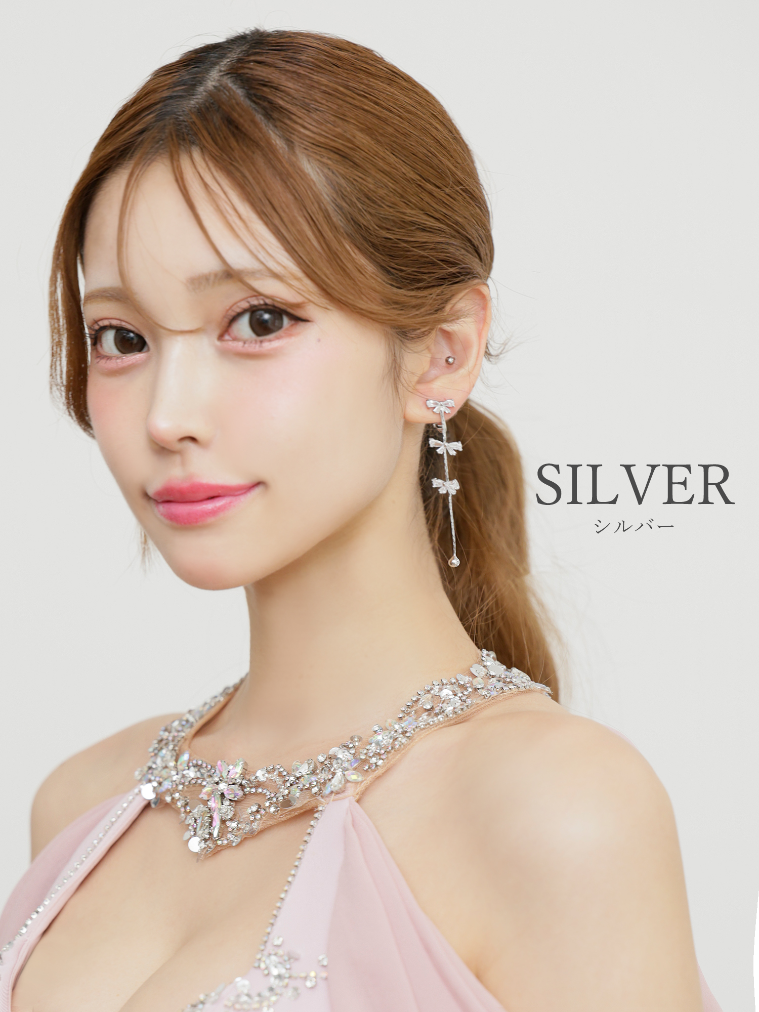 【アクセサリー:ピアス】【ANGEL R/エンジェルアール】3連リボンビジューイヤリング[OF02] [PI042RM-SV-F-2509]