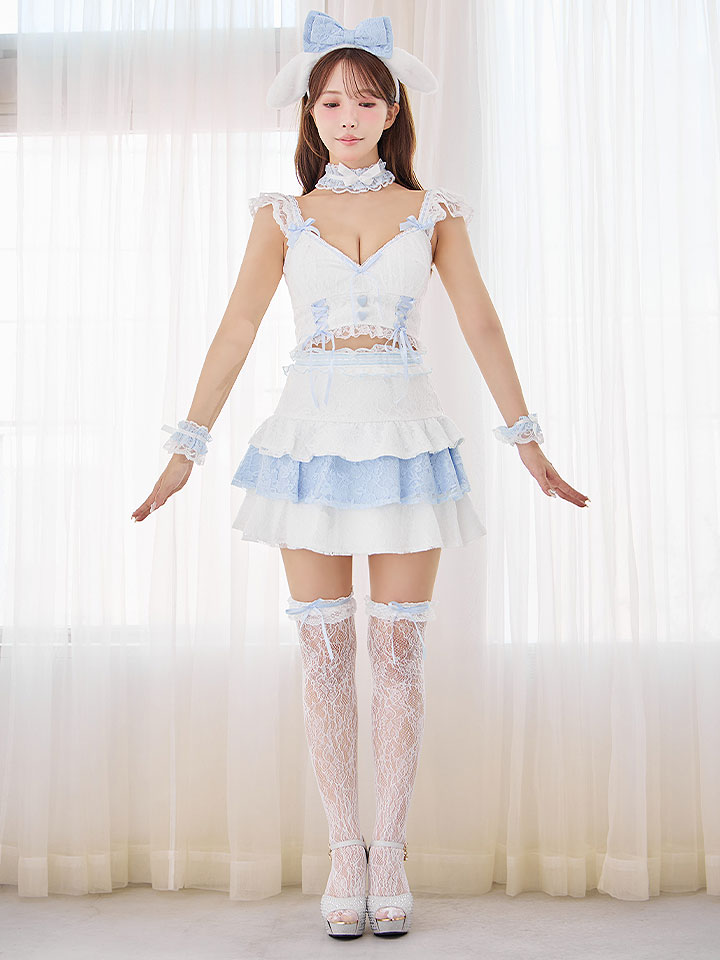 犬 パピー いぬ 子犬 リボン 甘い あざと コンカフェ スイート あまい フレア ミニ セットアップ セクシー コスプレ
