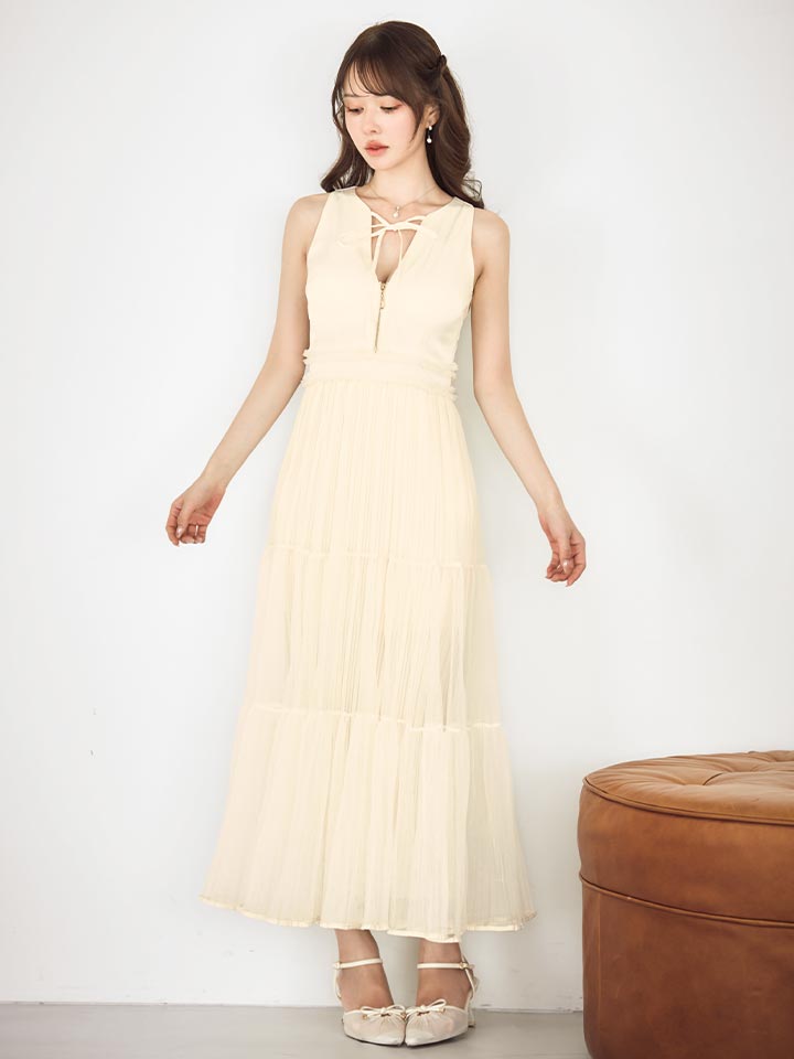 谷間を美しく引き立てる胸元のデザインで大人の魅力をアピール。
