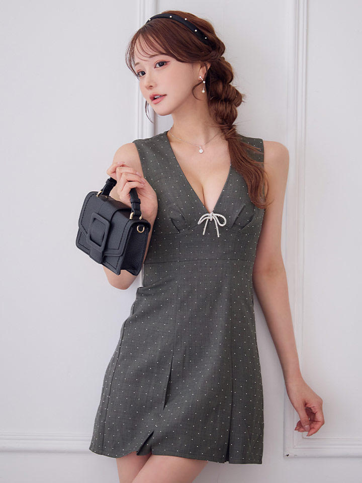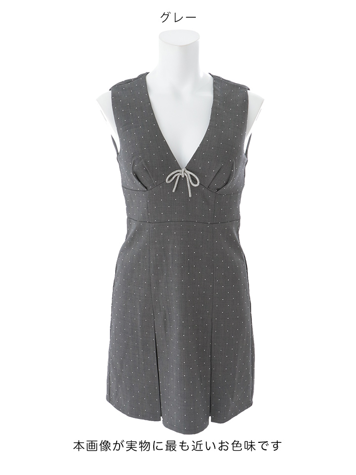リボンビジュースタッズノースリーブプリーツミニドレス/キャバドレス【XS-Mサイズ/1カラー】[OF01] 【SB】dzwAG [3440SBdzwAG-250917-1]
