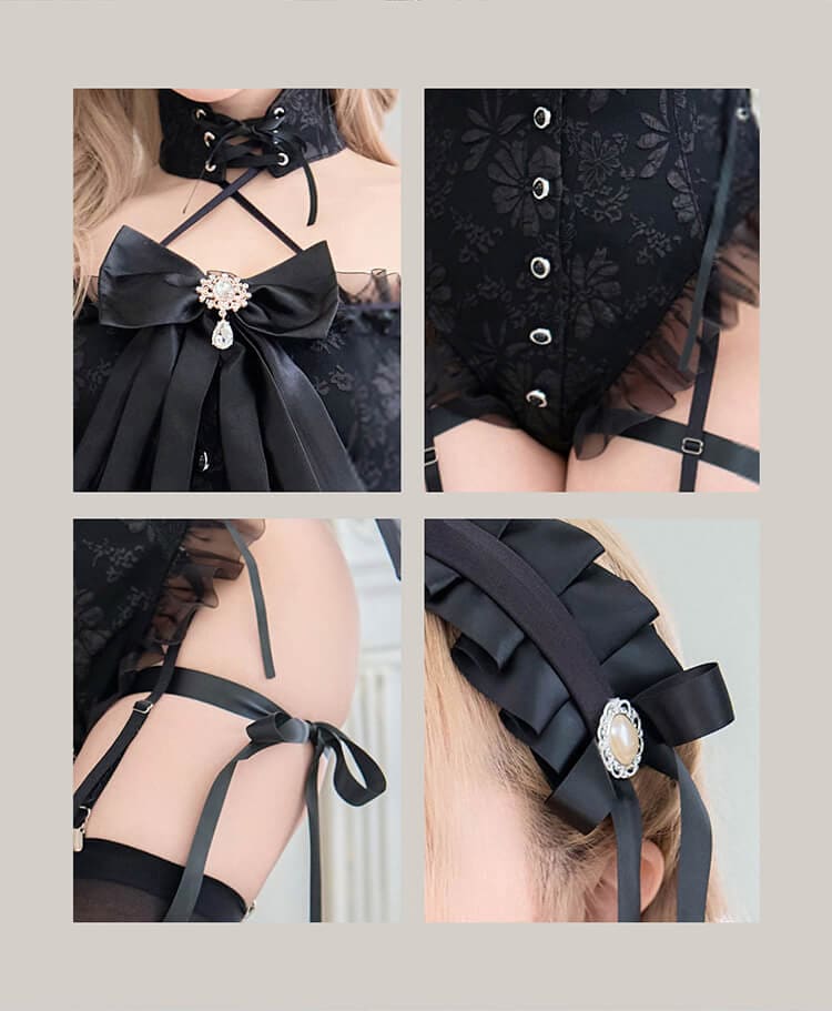 カチューシャ・ハイレグ・つけ襟・フロントリボン・ソックス・しっぽ