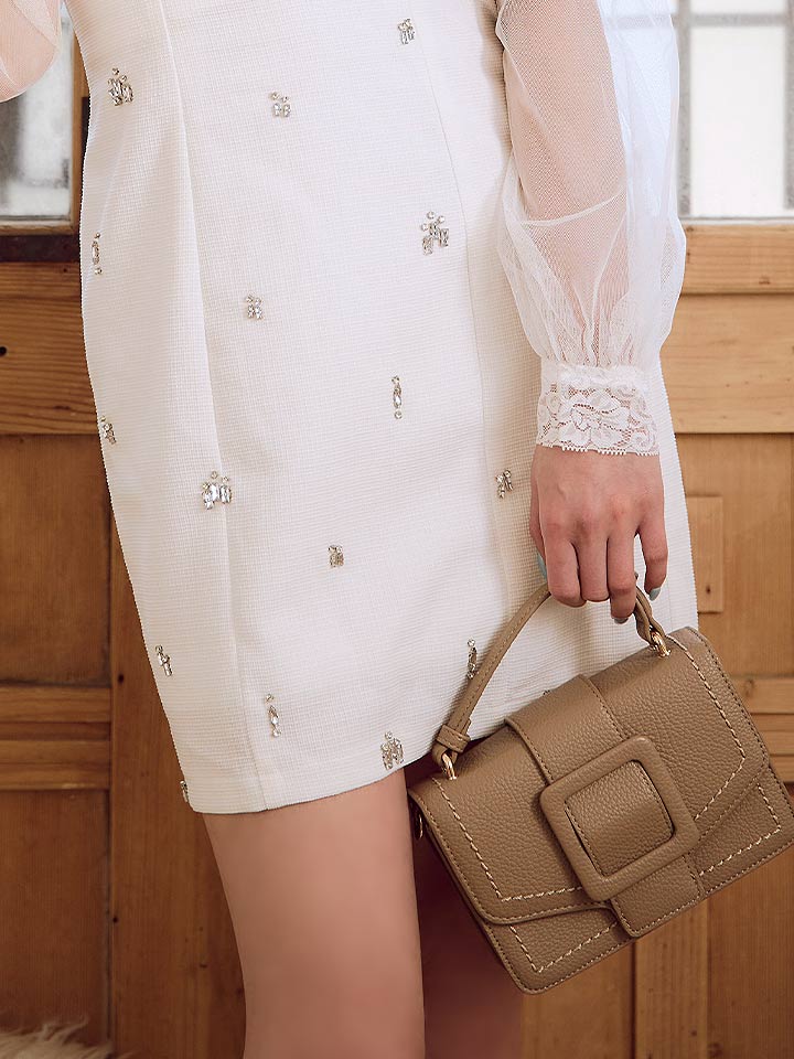 チュール袖ビジューミニドレス/キャバドレス【XS-XLサイズ/1カラー】[OF01] 【SB】dzc [3055SBdzc-250919-1]
