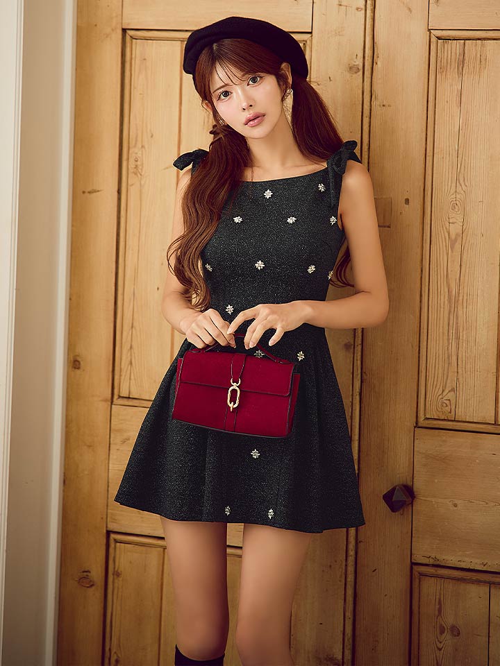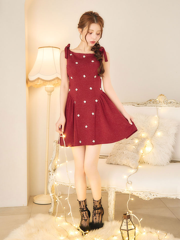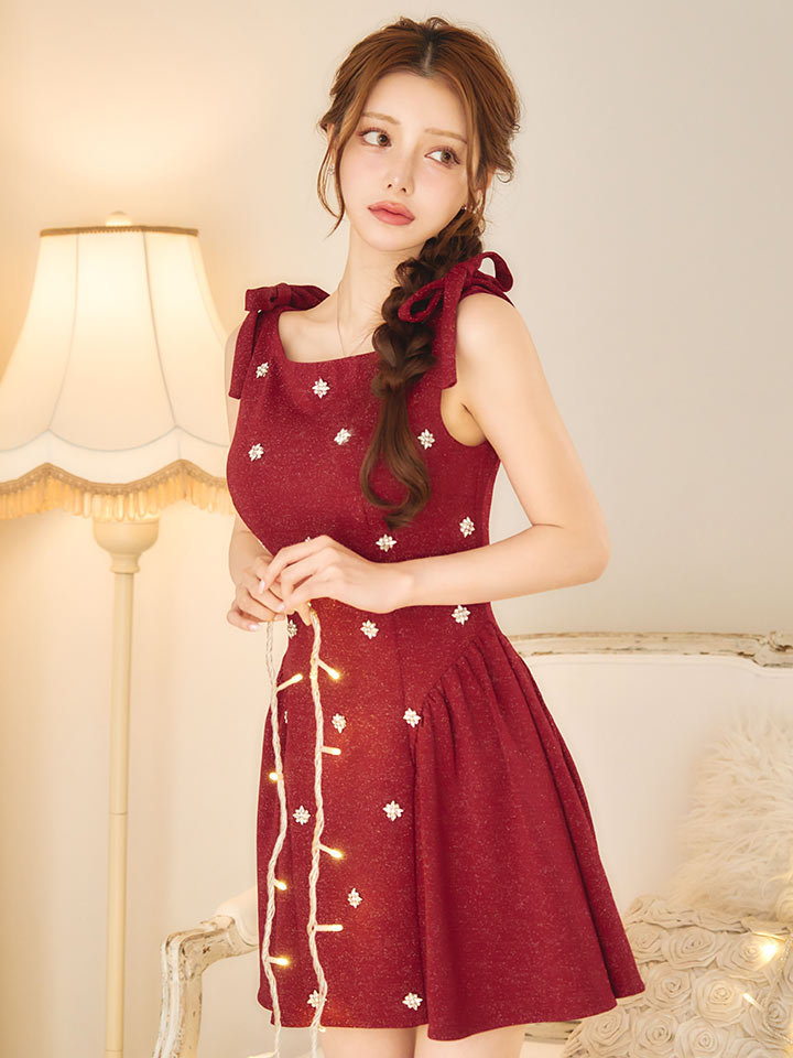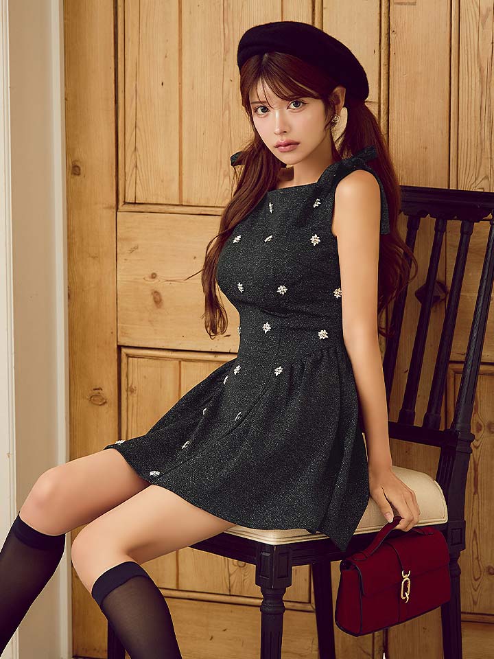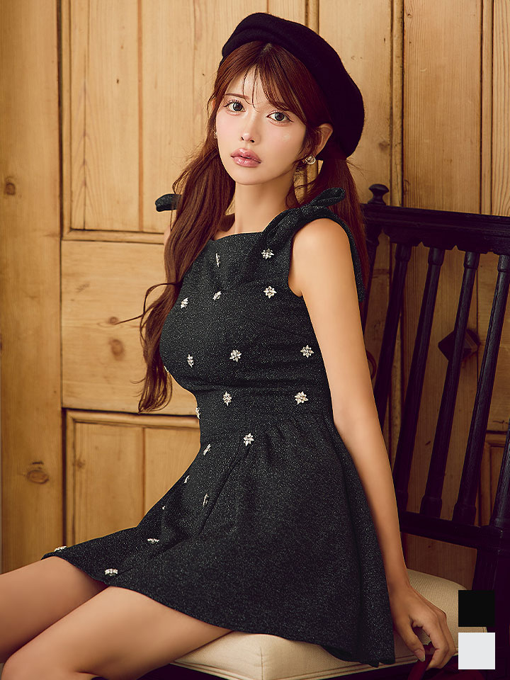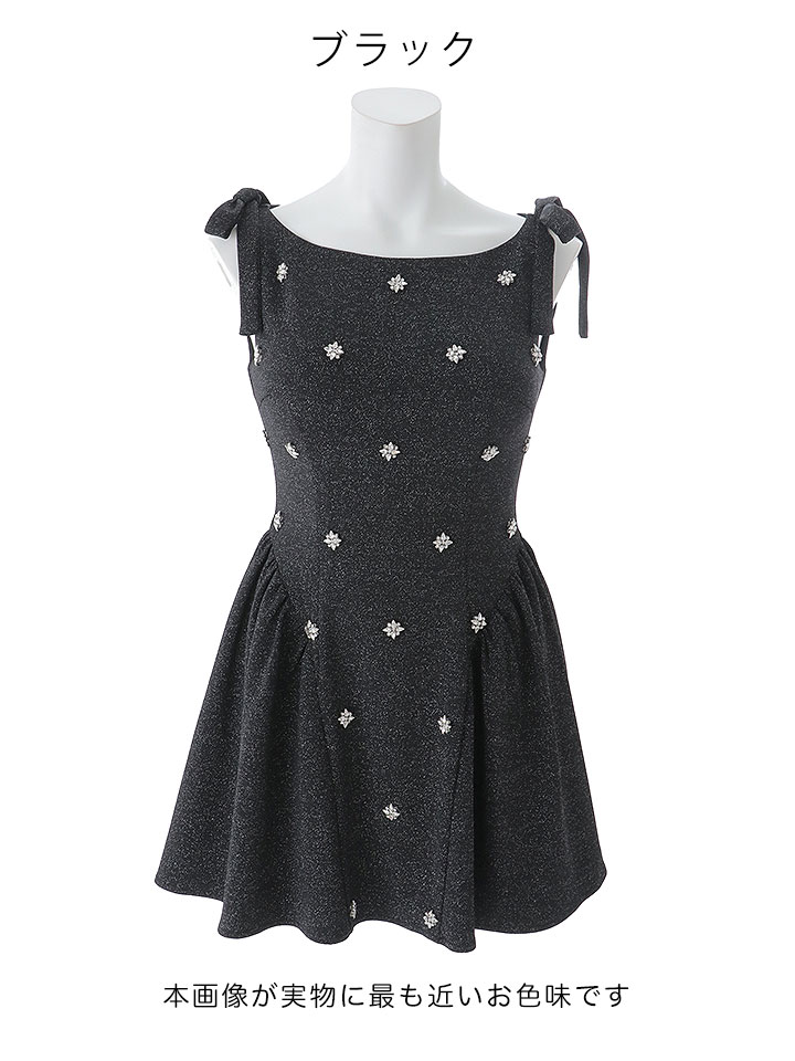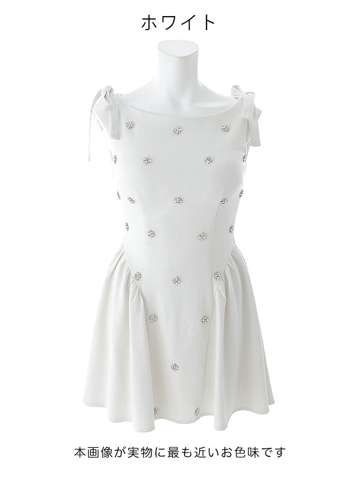 ショルダーリボンビジューフレアミニドレス/キャバドレス【XS-Mサイズ/3カラー】[OF03] 【YN】dzwvIA [5715YNdzwvIA-250924-1]