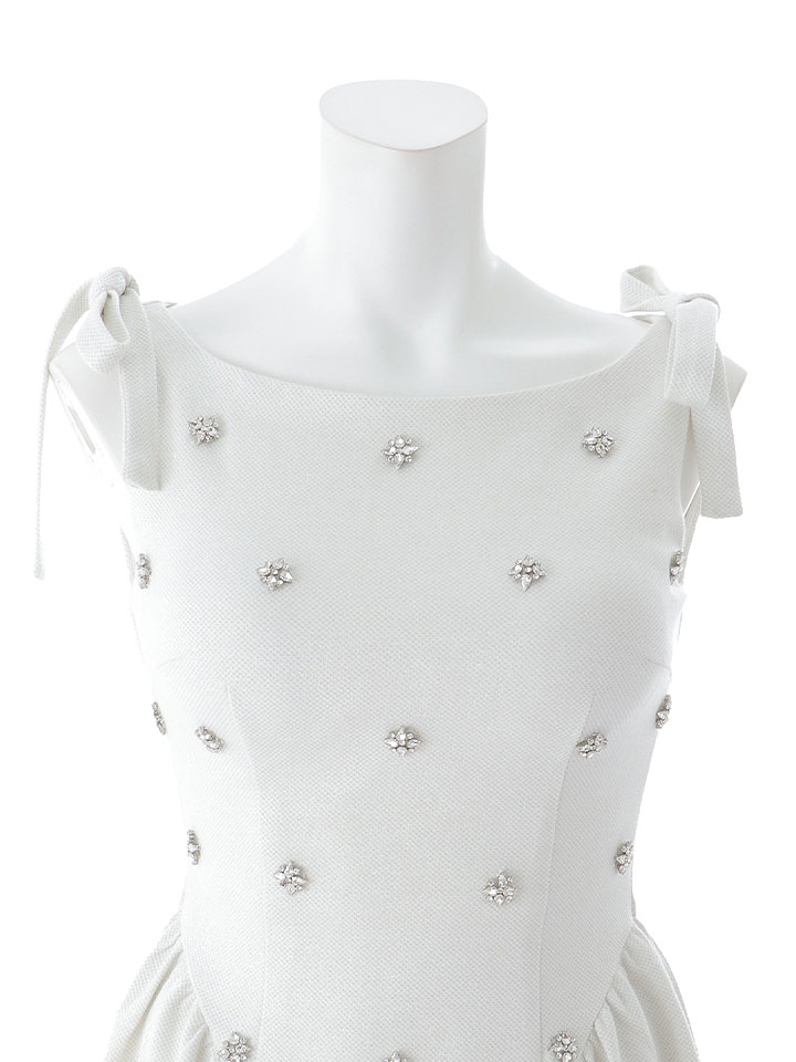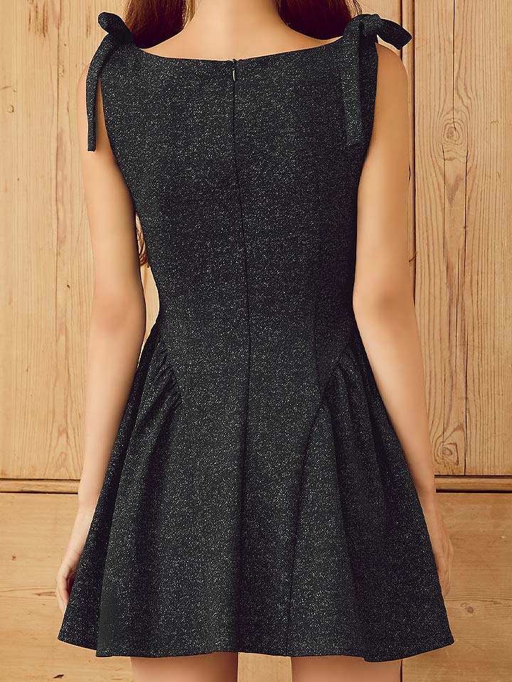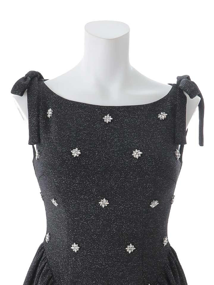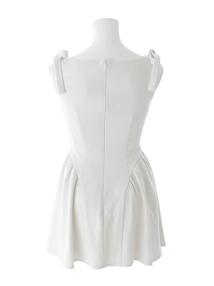 両サイドの肩リボンがさりげなく可愛さを添えるミニドレス。