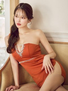 真優川咲・ゆめ着用キャバドレス胸元をビジューでゴージャスにあしらった注目間違いなしなミニドレス。