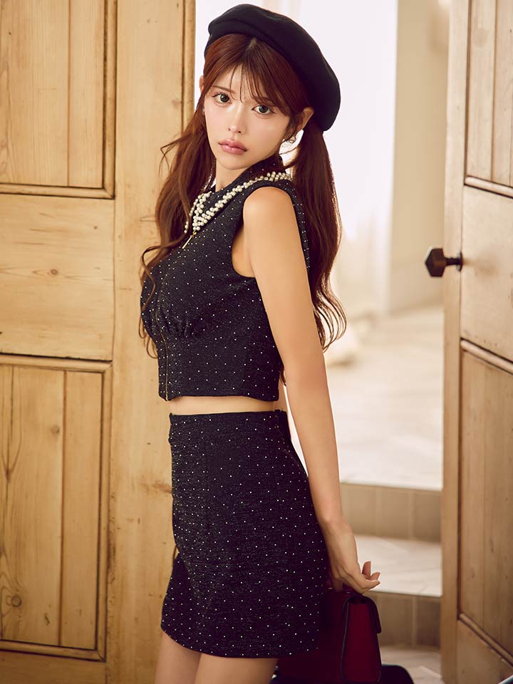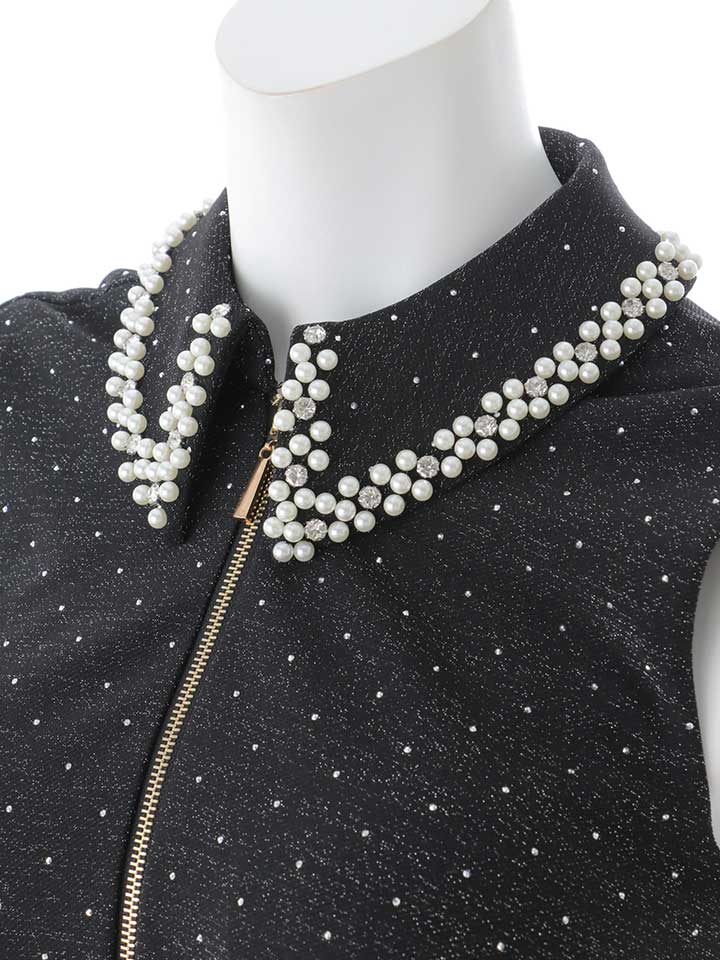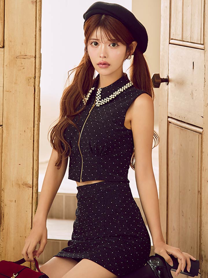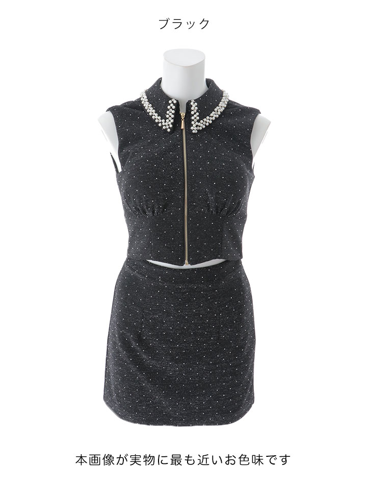 パール襟フロントジップセットアップタイトミニドレス/キャバドレス【XS-Lサイズ/1カラー】[OF01] 【SB】dzwIA [3432SBdzwIA-250924-1]
