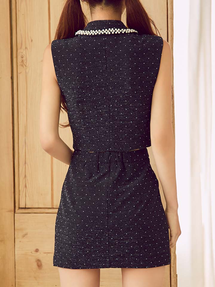 襟付きデザインでシャープな印象の2ピースミニドレス。