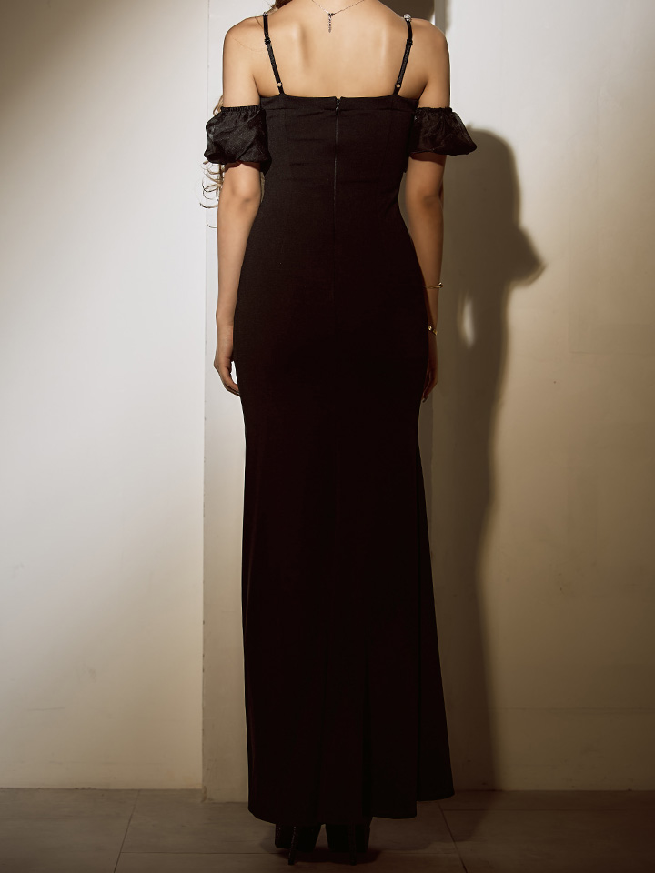 シフォンオフショルダースリットタイトロングドレス/キャバドレス【S-Lサイズ/2カラー】[OF03] 【YN】dzk [5719YNdzk-250926-1]