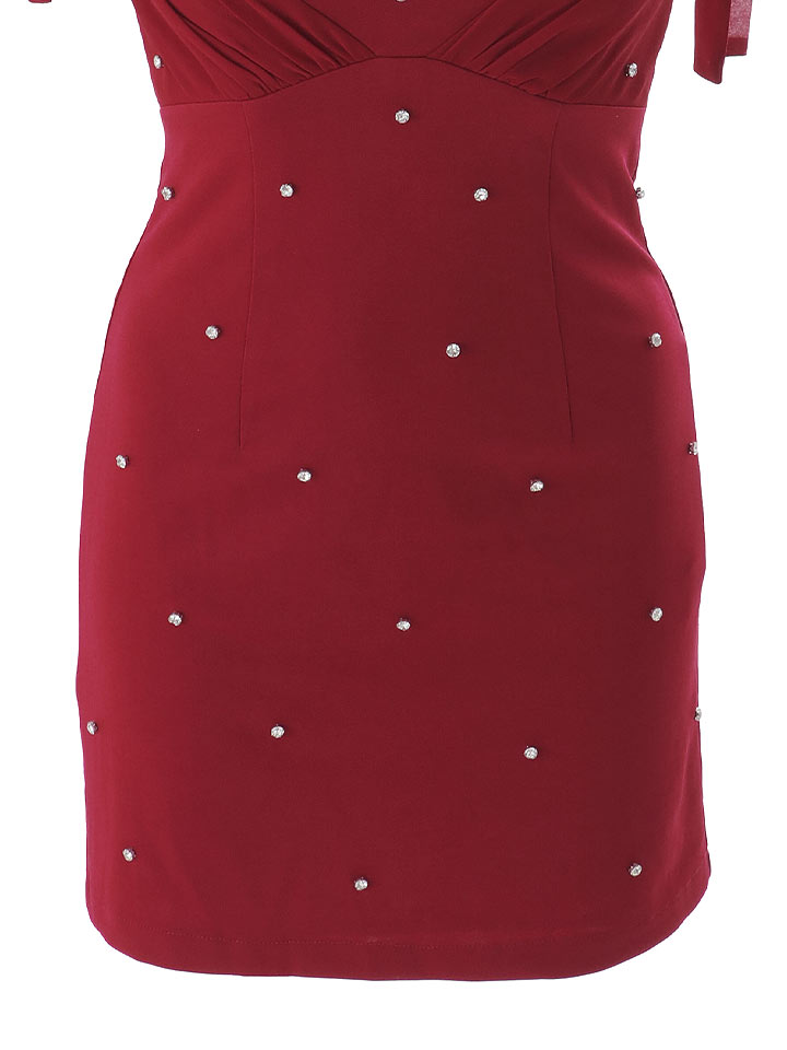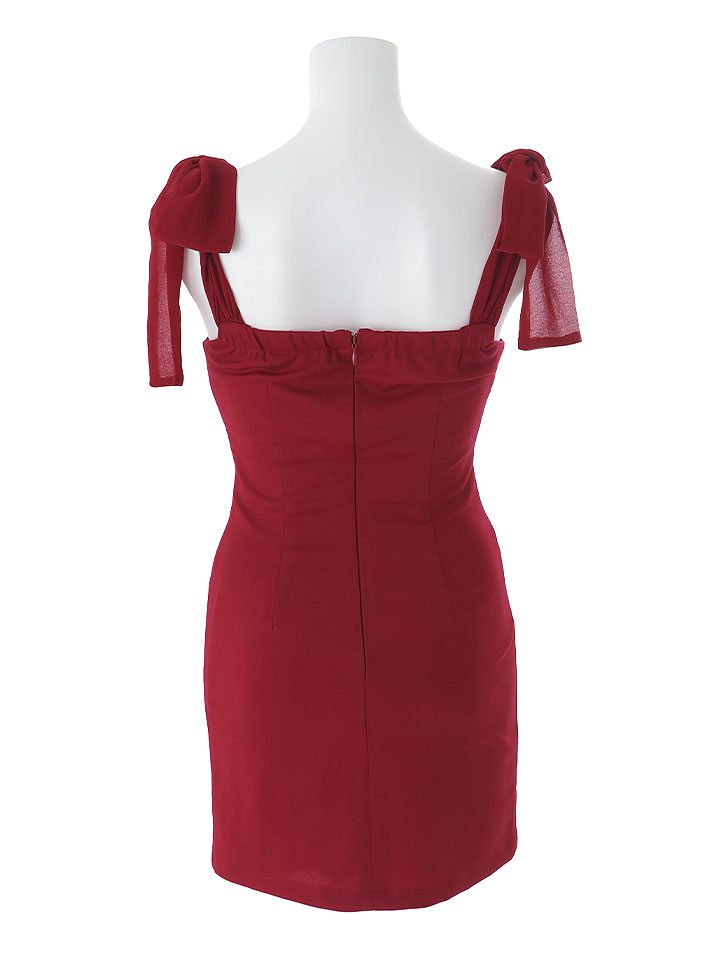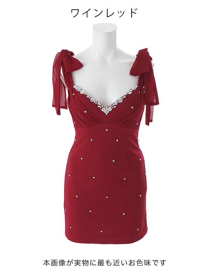 ショルダーリボンVネックビジュータイトミニドレス/キャバドレス【XS-Mサイズ/1カラー】[OF03] 【YN】dzwvCA [5716YNdzwvCA-250929-1]