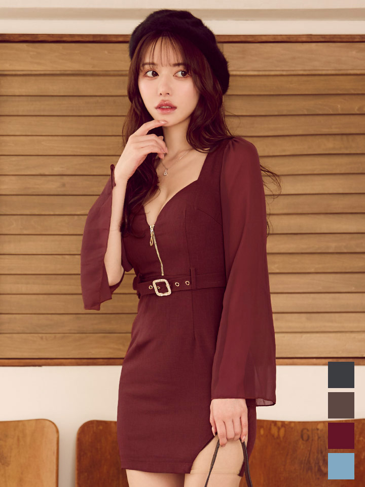 送料無料!新色登場!シアーロングスリーブベルトミニドレス/キャバドレス【XS-XLサイズ/5カラー】[OF03] 【YN】dzwsAG【一部予約商品/12月下旬発送予定】 [5619YNdzwsAG-250917-1]