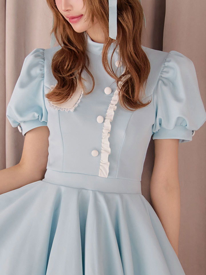 | フリーサイズ | フリーサイズ:着丈(フリル含む)80cm、袖丈22cm、バスト84cm、ウエスト74cm |