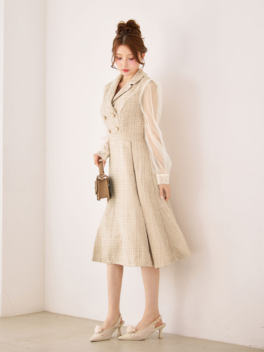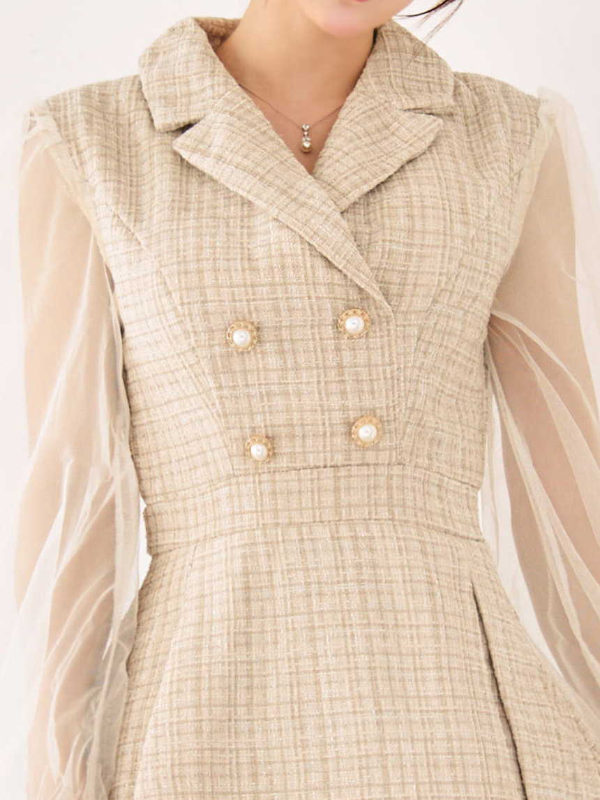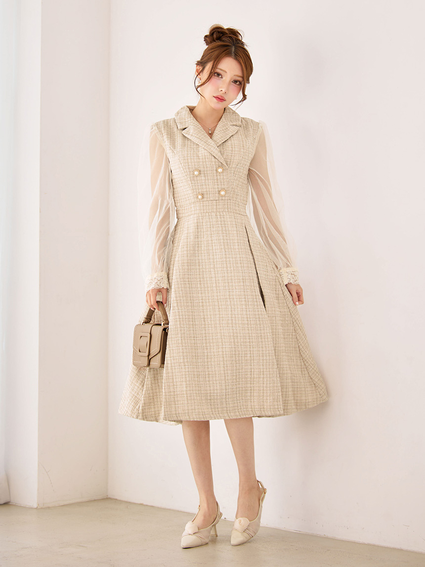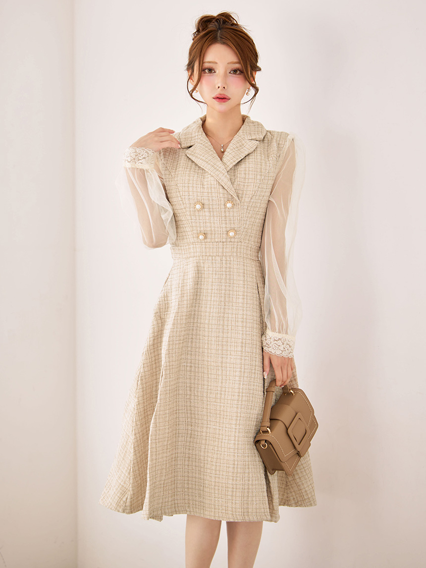 SALE!新サイズ登場!【sifeel/シフィール】シアースリーブフレアワンピースドレス/ツイード/襟付き/ボタン/ミディアムドレス/キャバドレス【XS-Lサイズ/1カラー】[HC02-X] 【SB】dzj [8153SBdzj-250920-1]