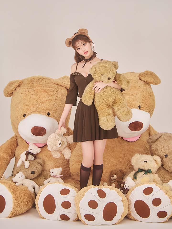 ブラウン 茶色 セットアップ 甘い あざと コンカフェ スイート あまい ツーピース 2ピース 熊 クマ アニマル