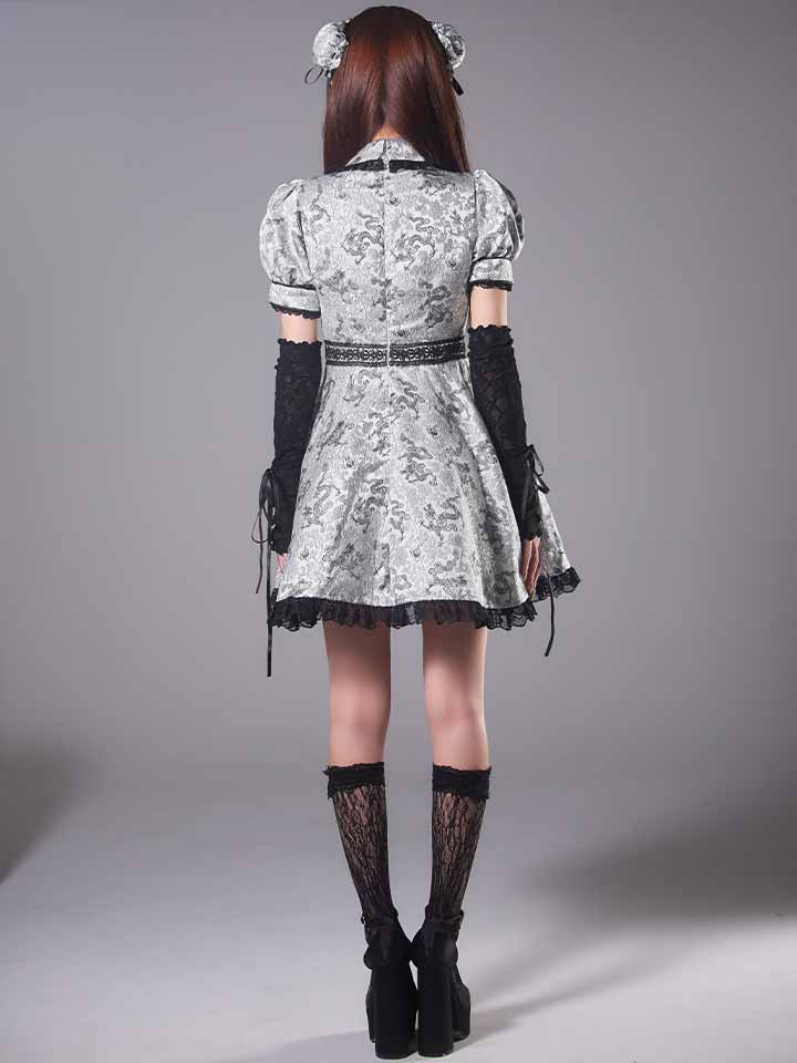 【ハロウィン】アームウォーマー付きフレアスカートチャイナ 【コスプレ5点セット】 【S-XLサイズ/4カラー】[HC03] [HW-169-YN-dzwk-GY-25CC]