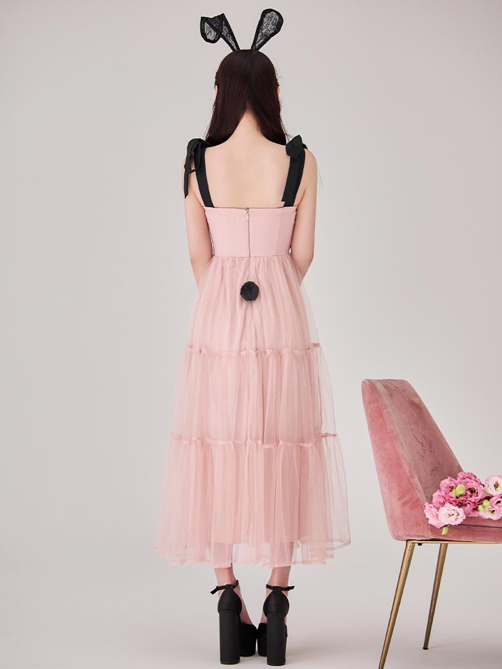 うさぎ バニー ワンピース かわいい セクシー コスプレ ミディアムスカート ノースリーブ ミディアム丈 ミモレ丈 ロングスカート