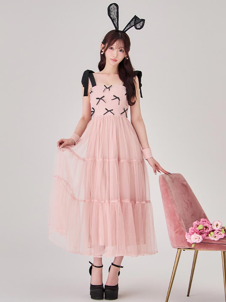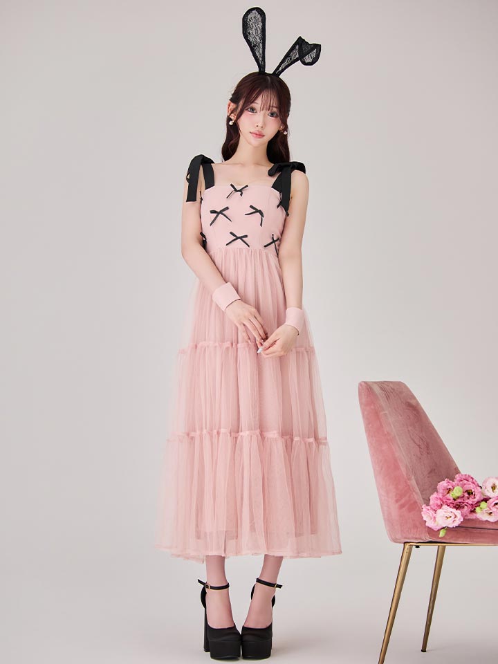 【SALE!!】【即日発送!】【ハロウィン】バニーリボンチュールワンピース 【コスプレ4点セット】 【S-Lサイズ/1カラー】[HC03]