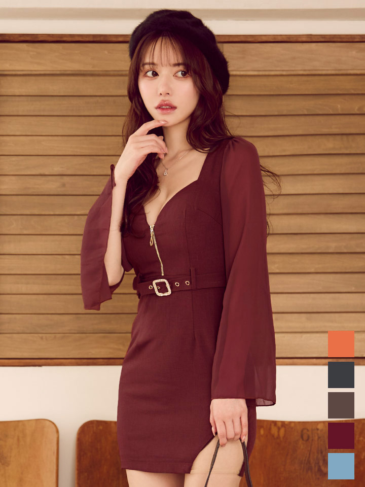 送料無料!【即日発送】新色登場!シアーロングスリーブベルトミニドレス/キャバドレス【XS-XLサイズ/5カラー】[OF03] 【YN】dzwsAG [5619YNdzwsAG-250922-1]