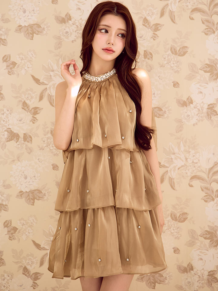 【即日発送】シフォンティアードビジューミニドレス/キャバドレス【XS-Mサイズ/2カラー】[OF01] 【SB】IA [3463SBIA-250924-2]
