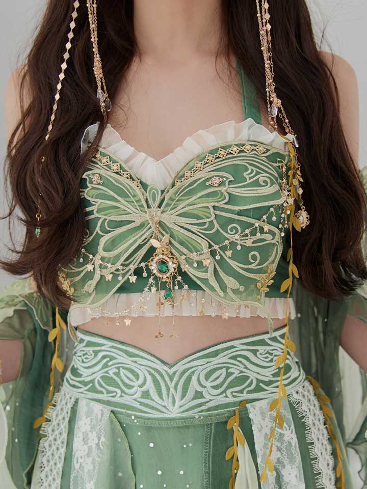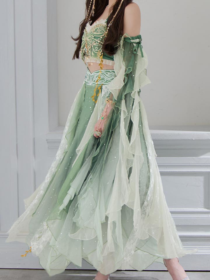 グリーン 緑 スカート ロング 胸盛り セットアップ