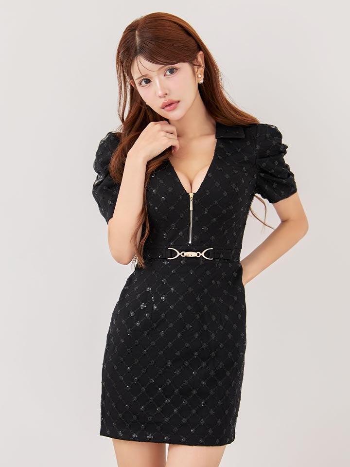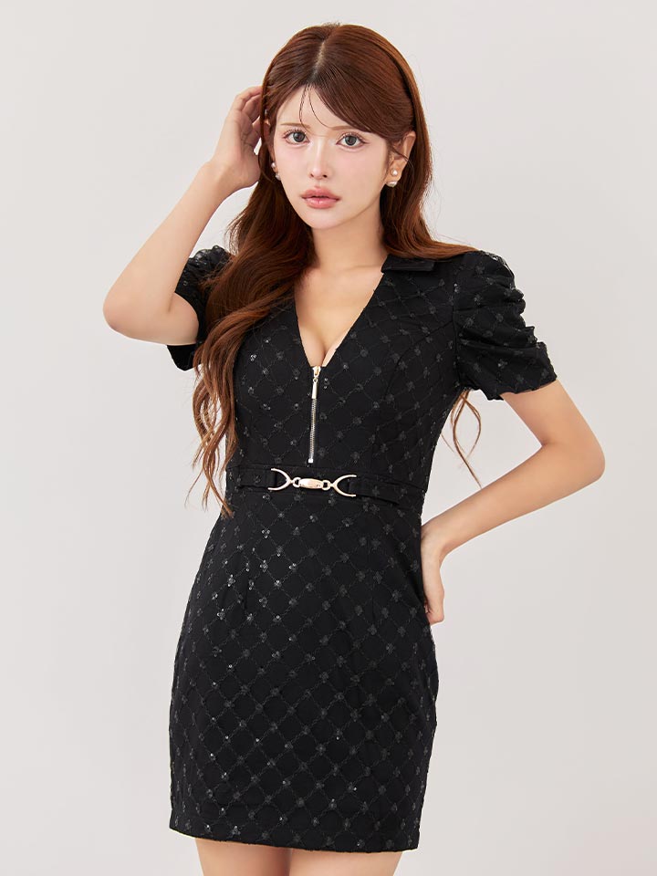 パフスリーブジップアップミニドレス/キャバドレス【XS-Lサイズ/2カラー】[OF01A] 【SB】dzw [3064SBdzw-250925-1]