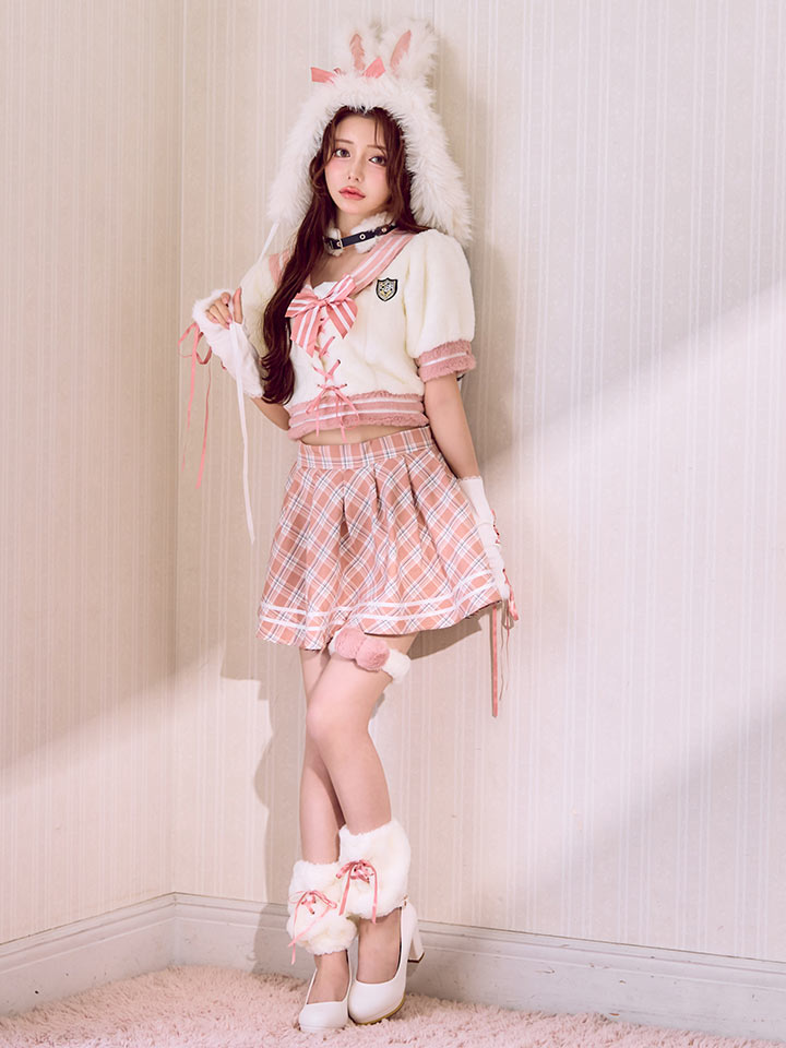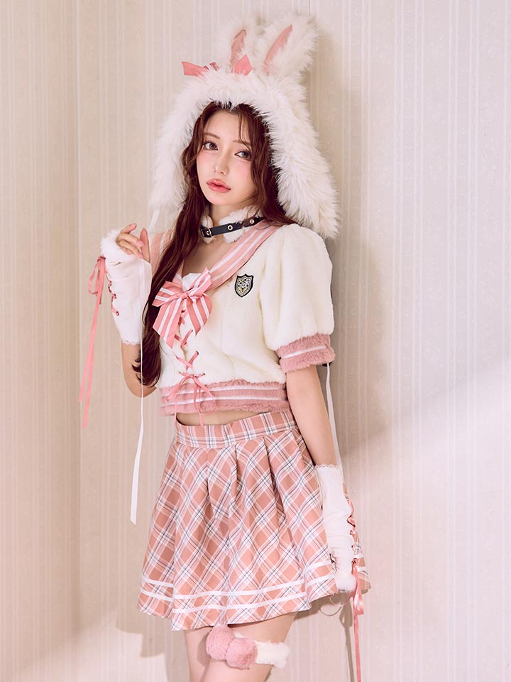 うさ耳フード・チョーカー・トップス・スカート・グローブ・太もも飾り・レッグウォーマー