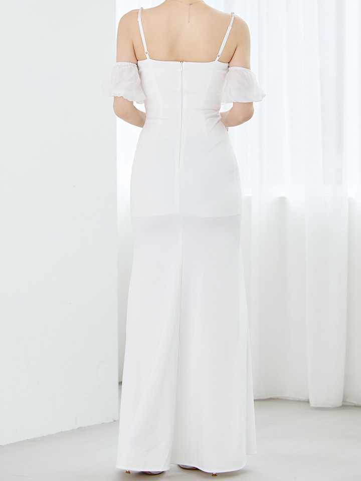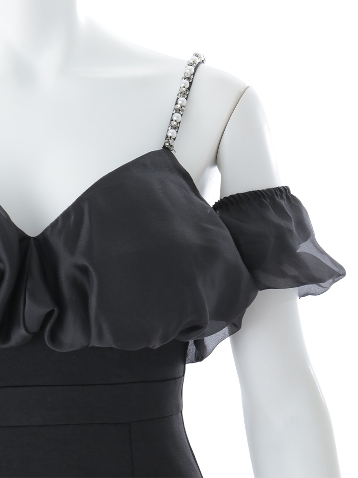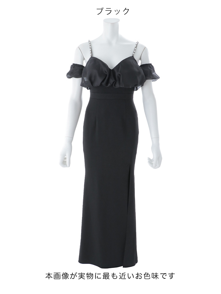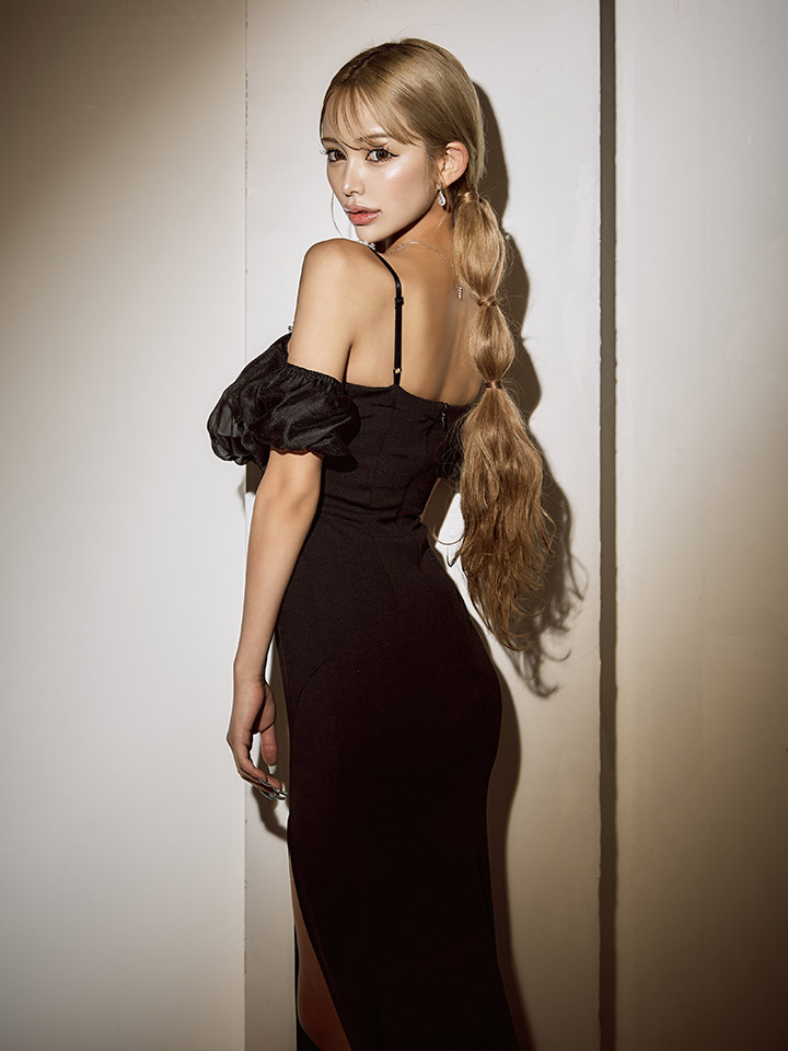 シフォンオフショルダースリットタイトロングドレス/キャバドレス【S-Lサイズ/2カラー】[OF03] 【YN】dzk