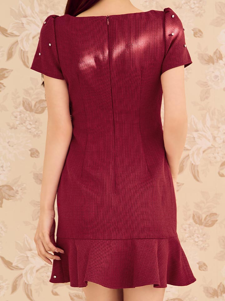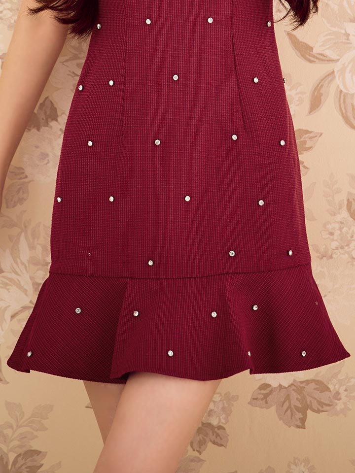 厚手の高級感あるツイード生地に大粒ビジューが映えるガーリー×モード大人ワンピドレス