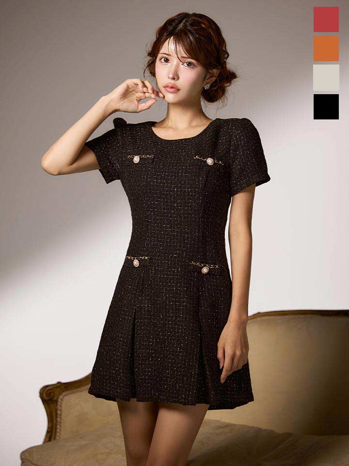 新色登場!プリーツスカートツイードワンピースドレス/キャバドレス【XS-Lサイズ/4カラー】[OF01A] 【SB】dzwu [AN3260SBdzwu-250927-1]