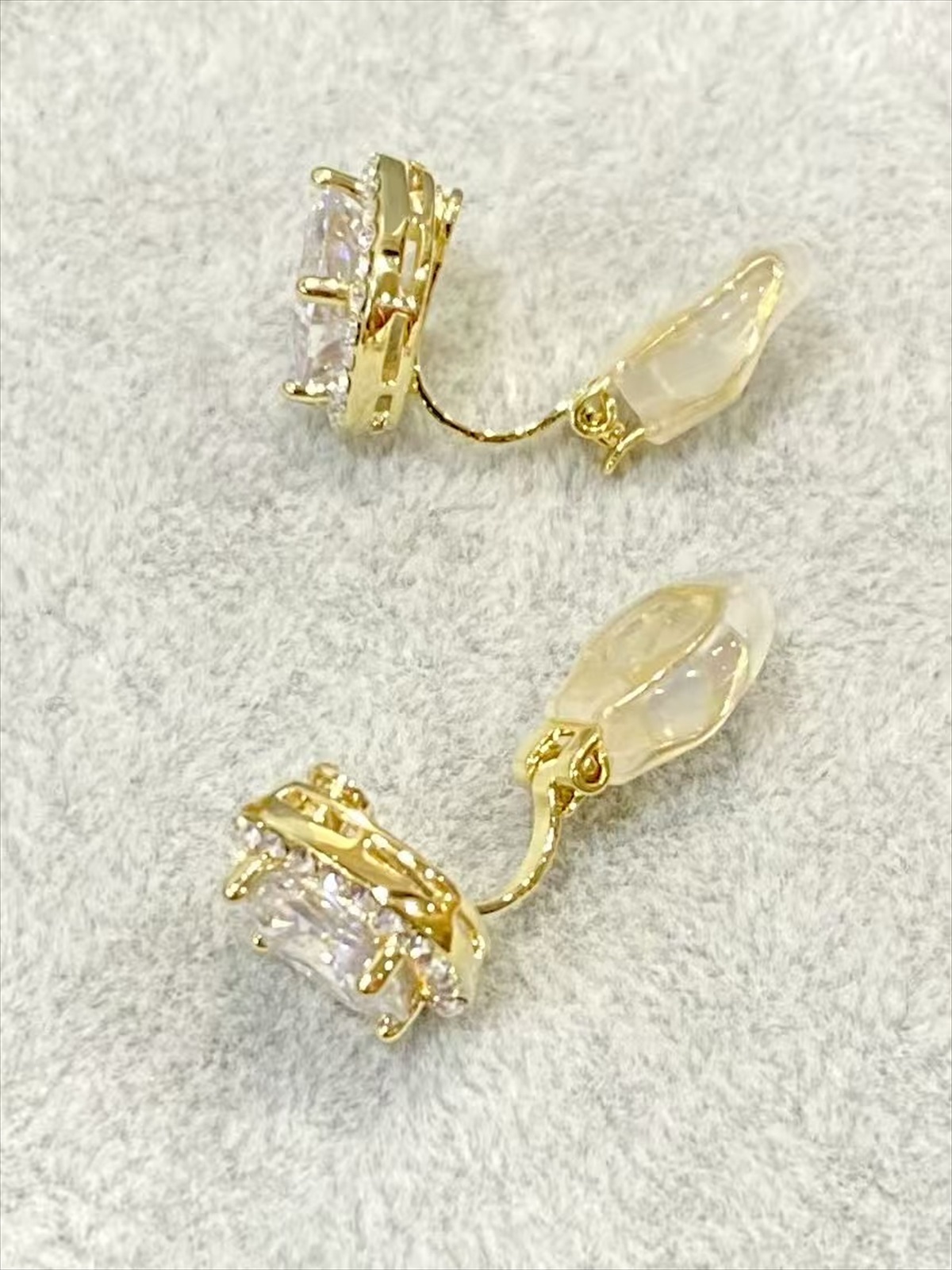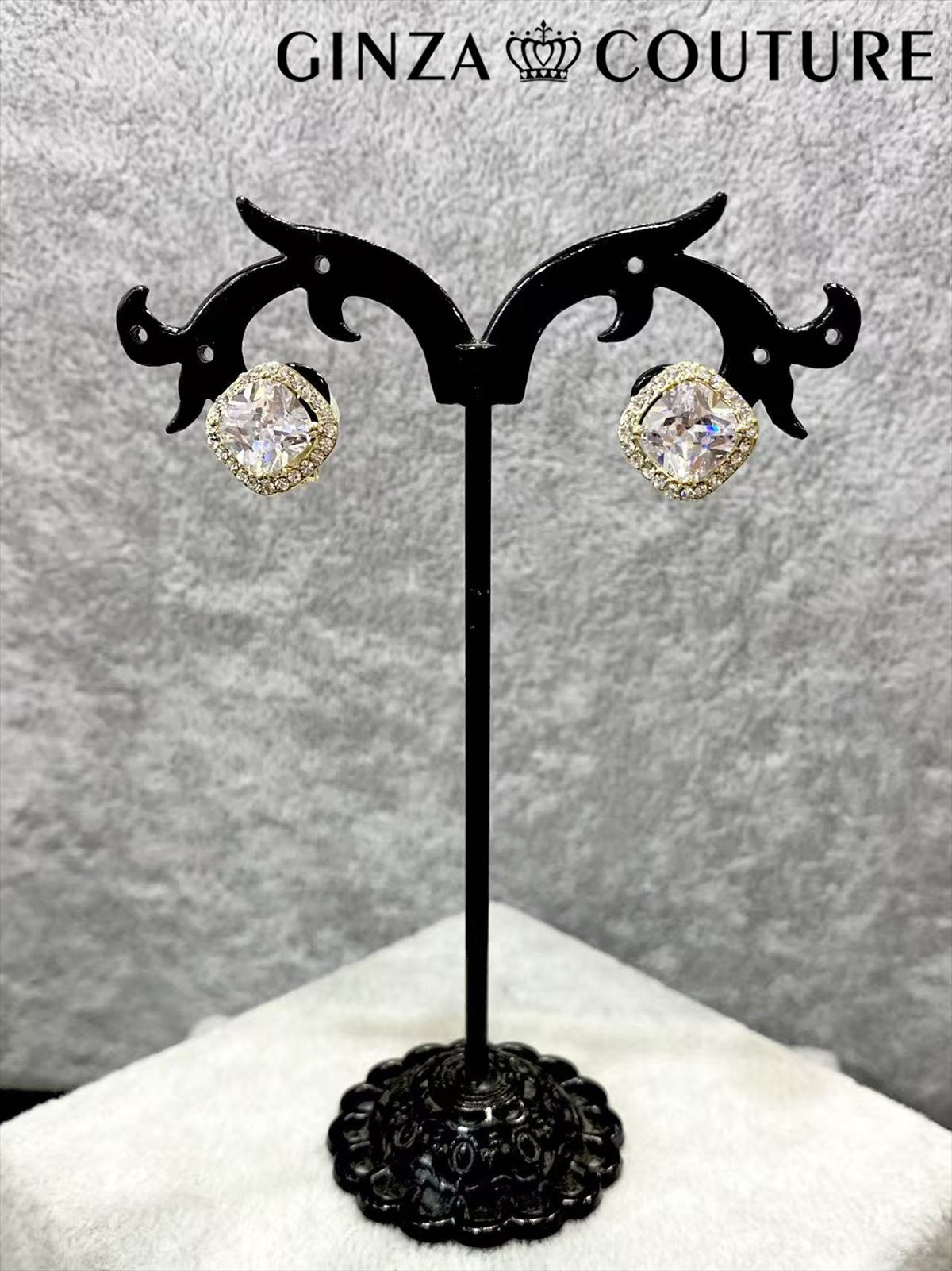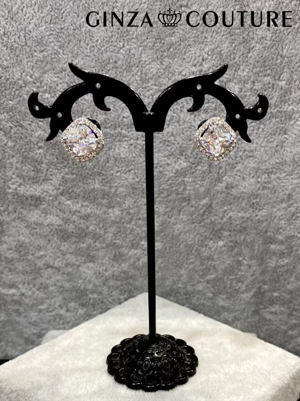 大粒のスクエアカットストーンがお顔周りを華やかに演出するイヤリング♡