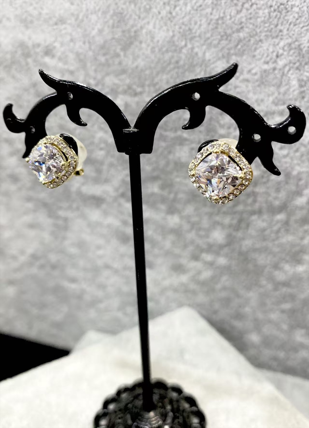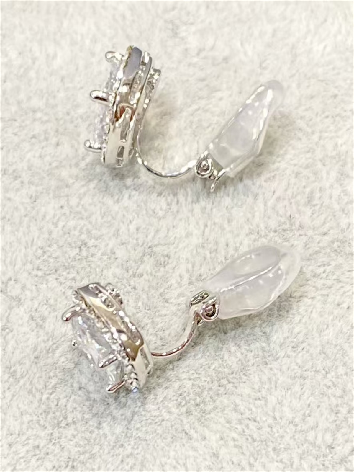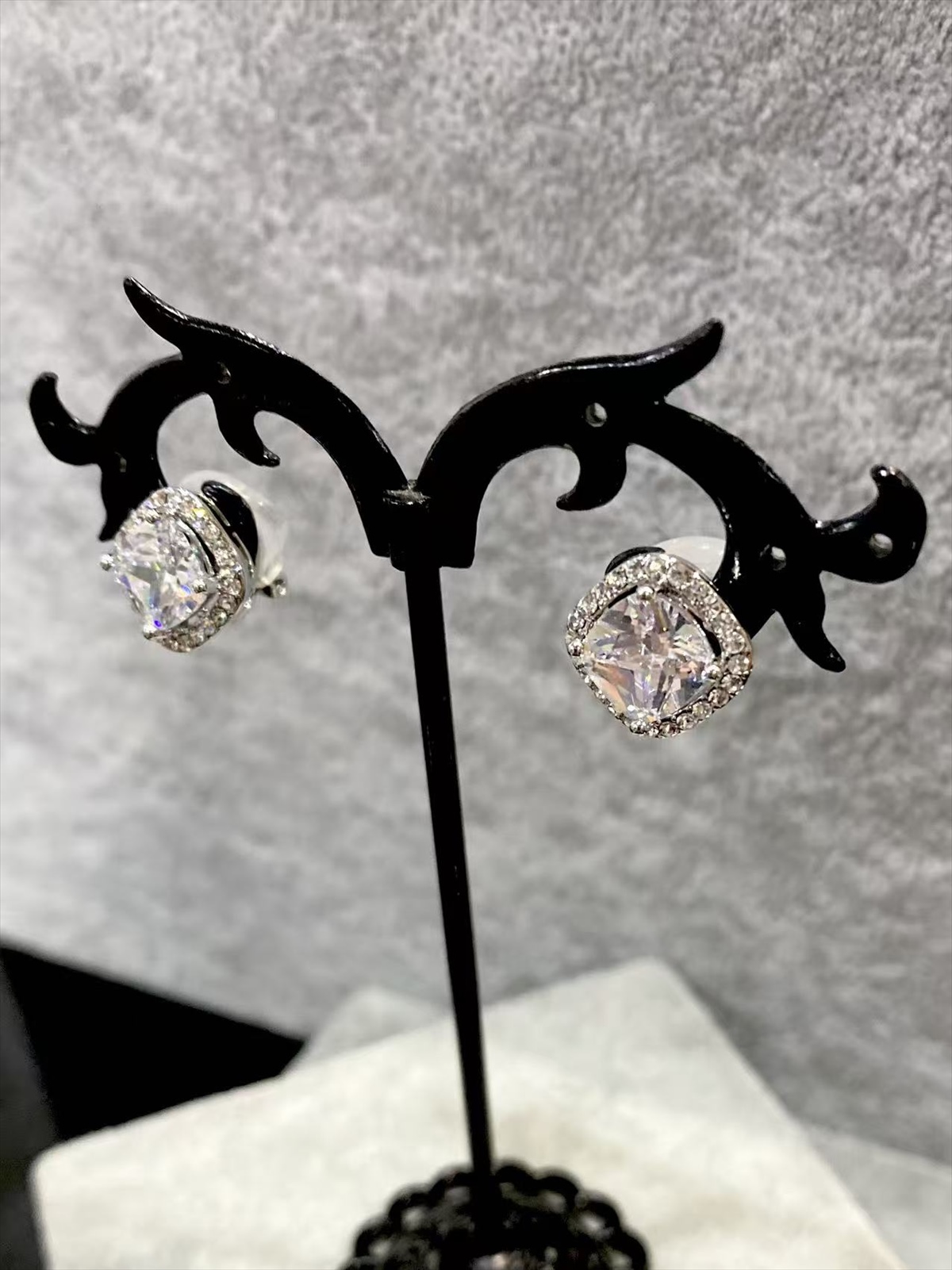 大粒のスクエアカットストーンがお顔周りを華やかに演出するイヤリング♡
