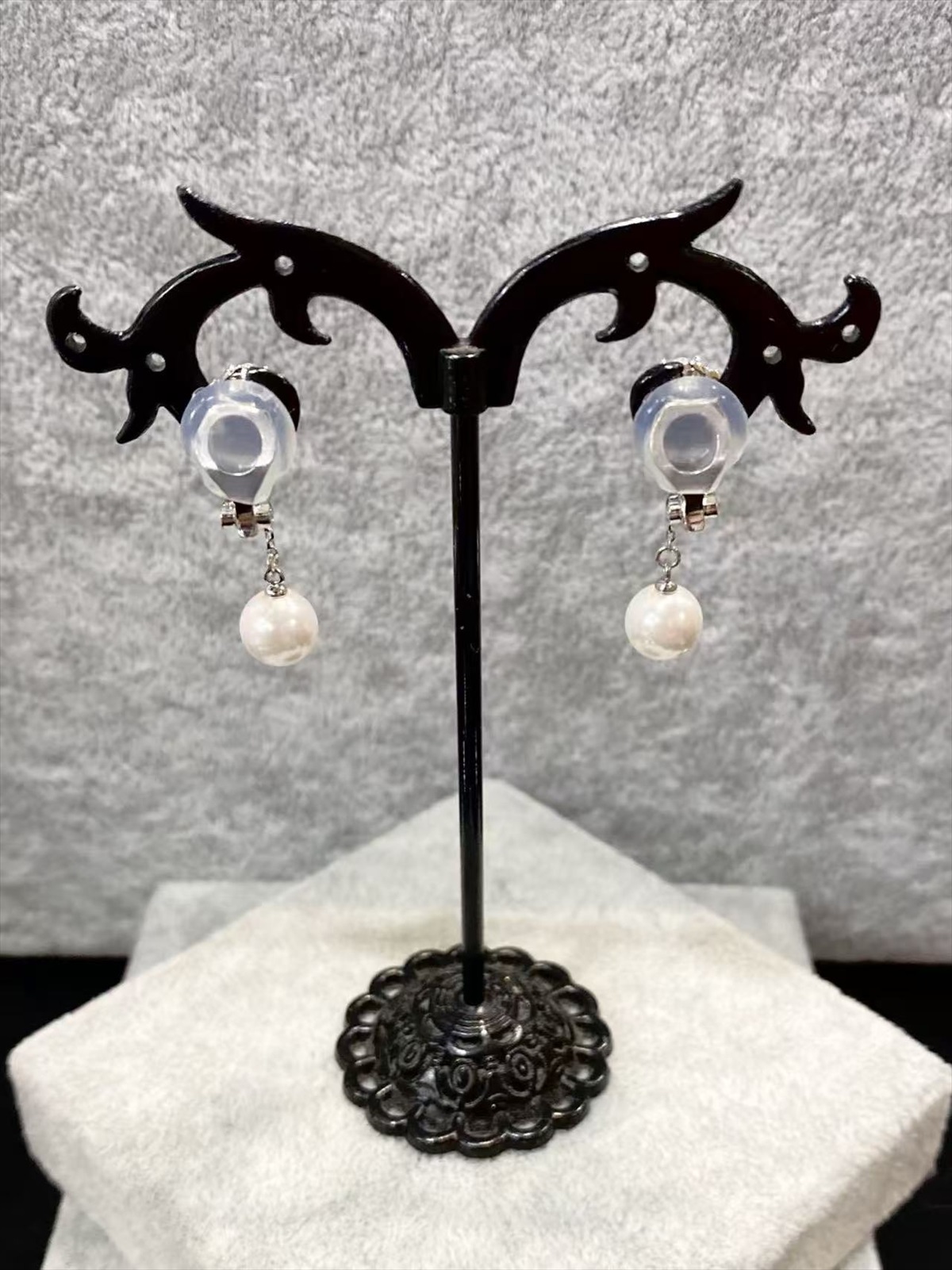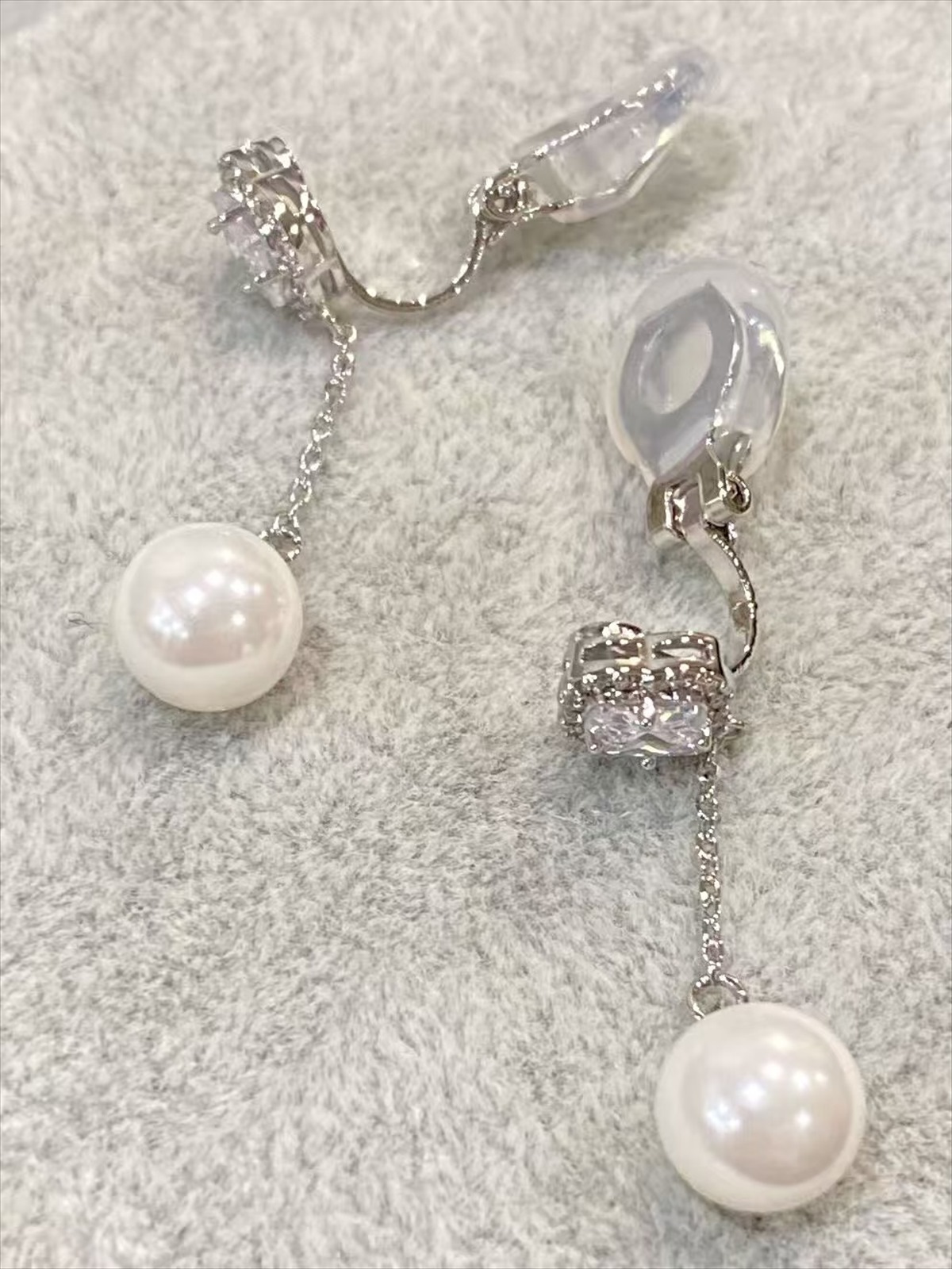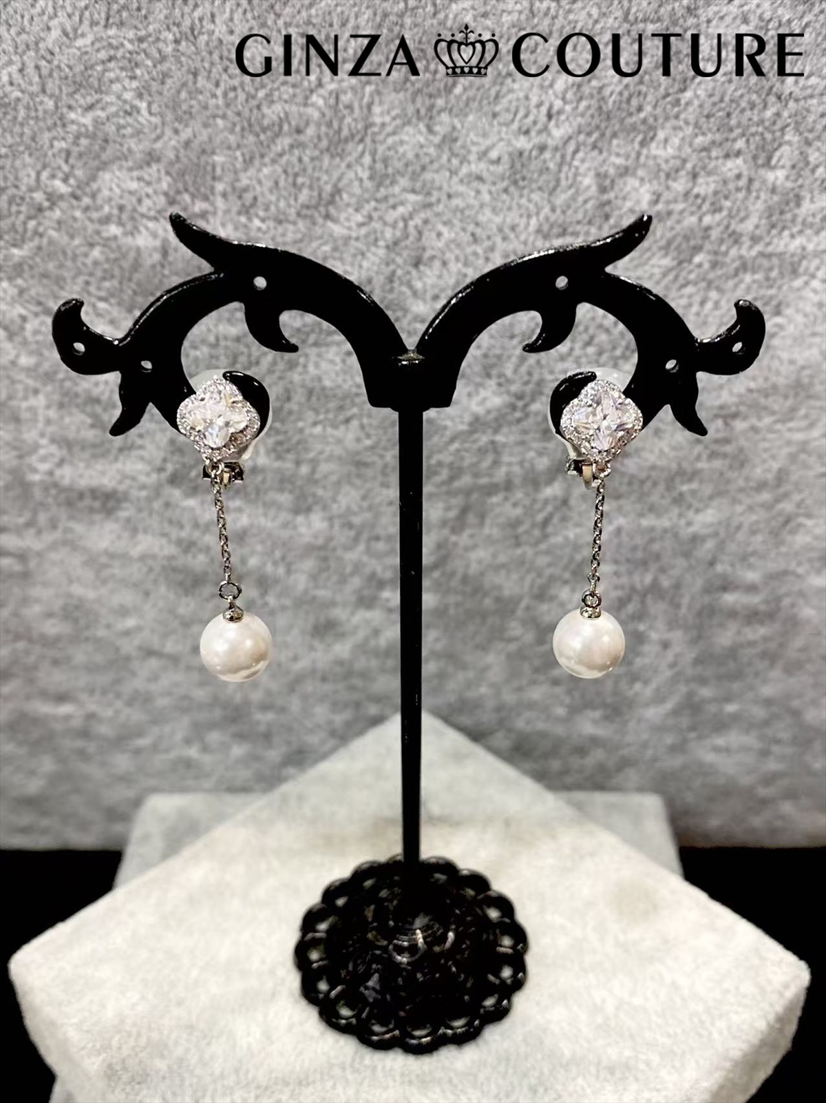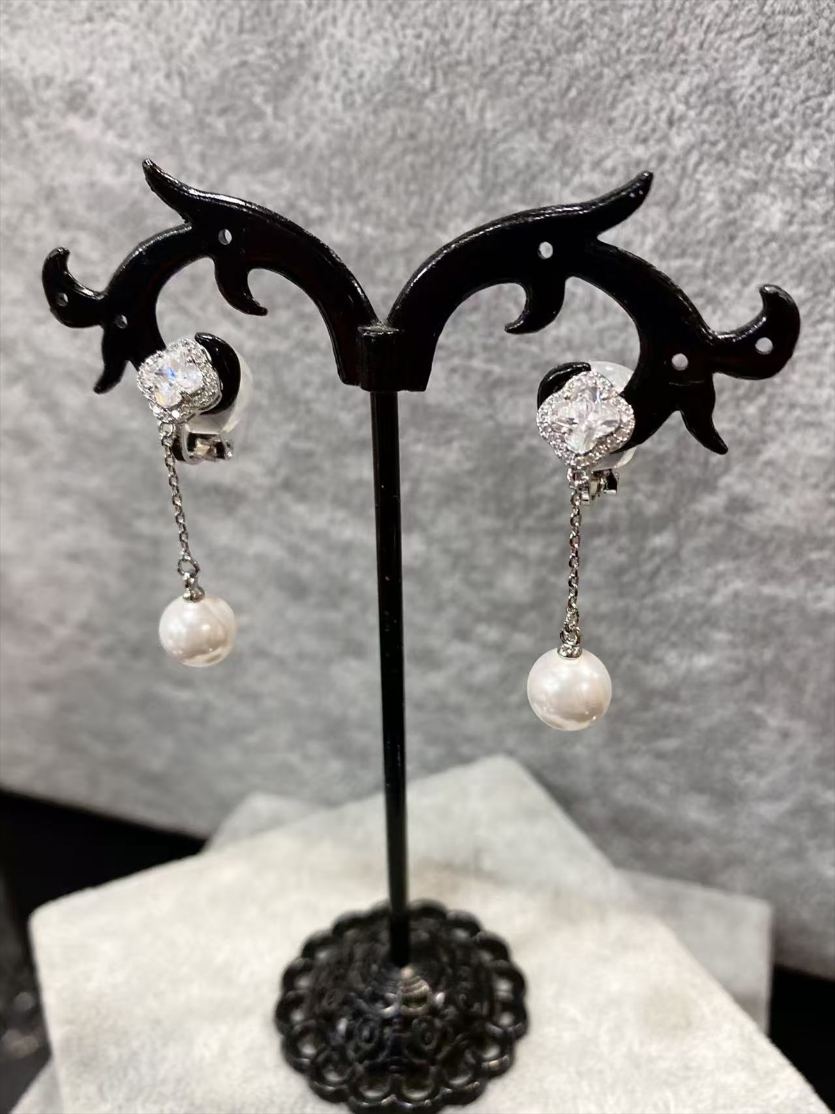 小ぶりのフラワーストーンに揺れるパールが華やかなイヤリング♡