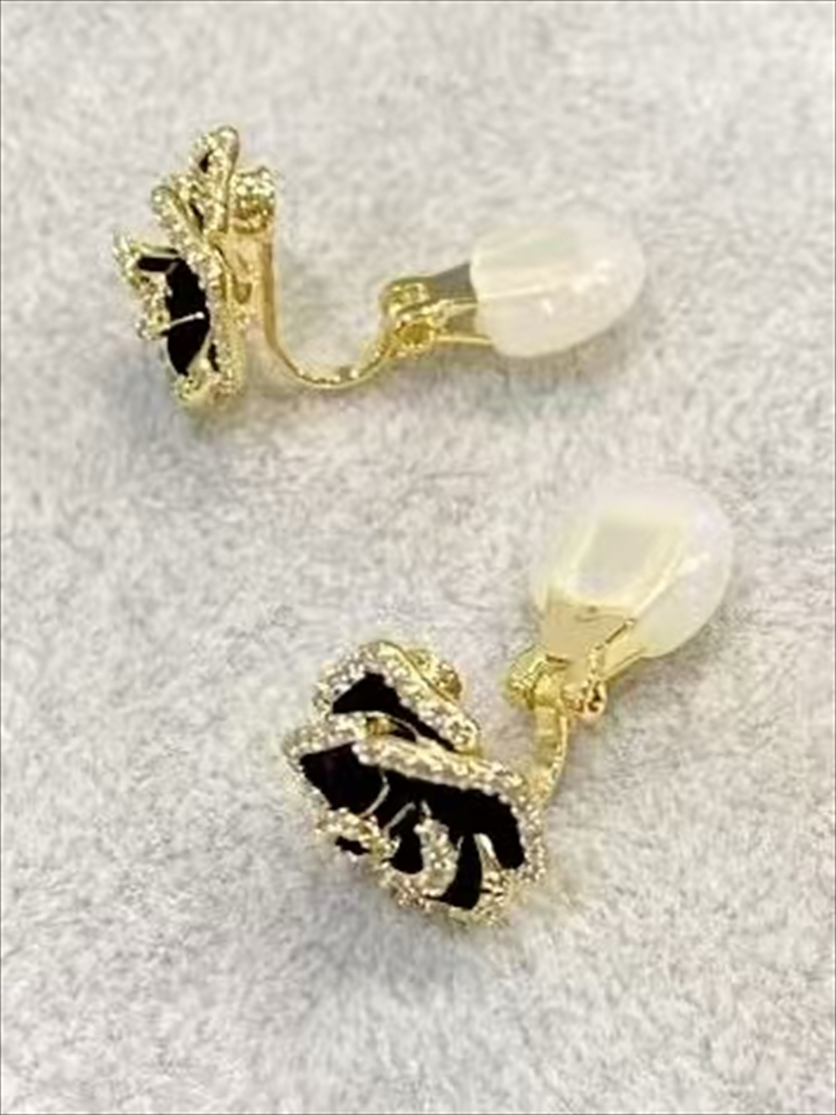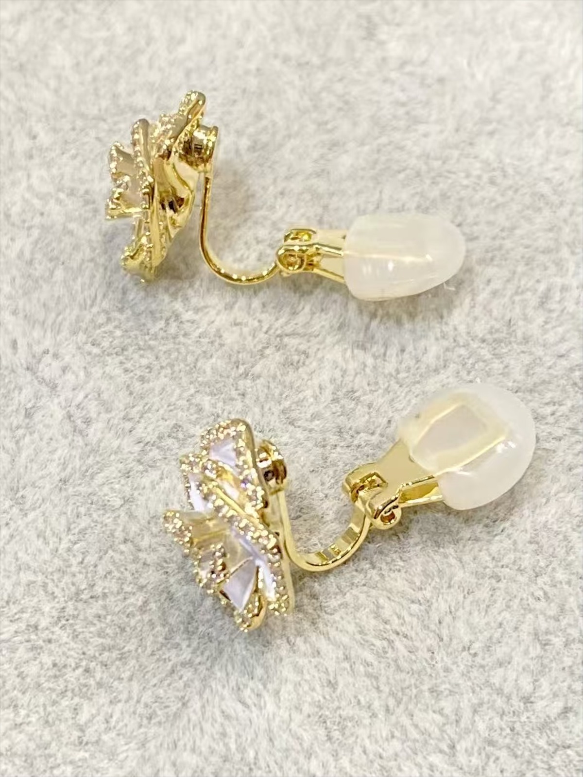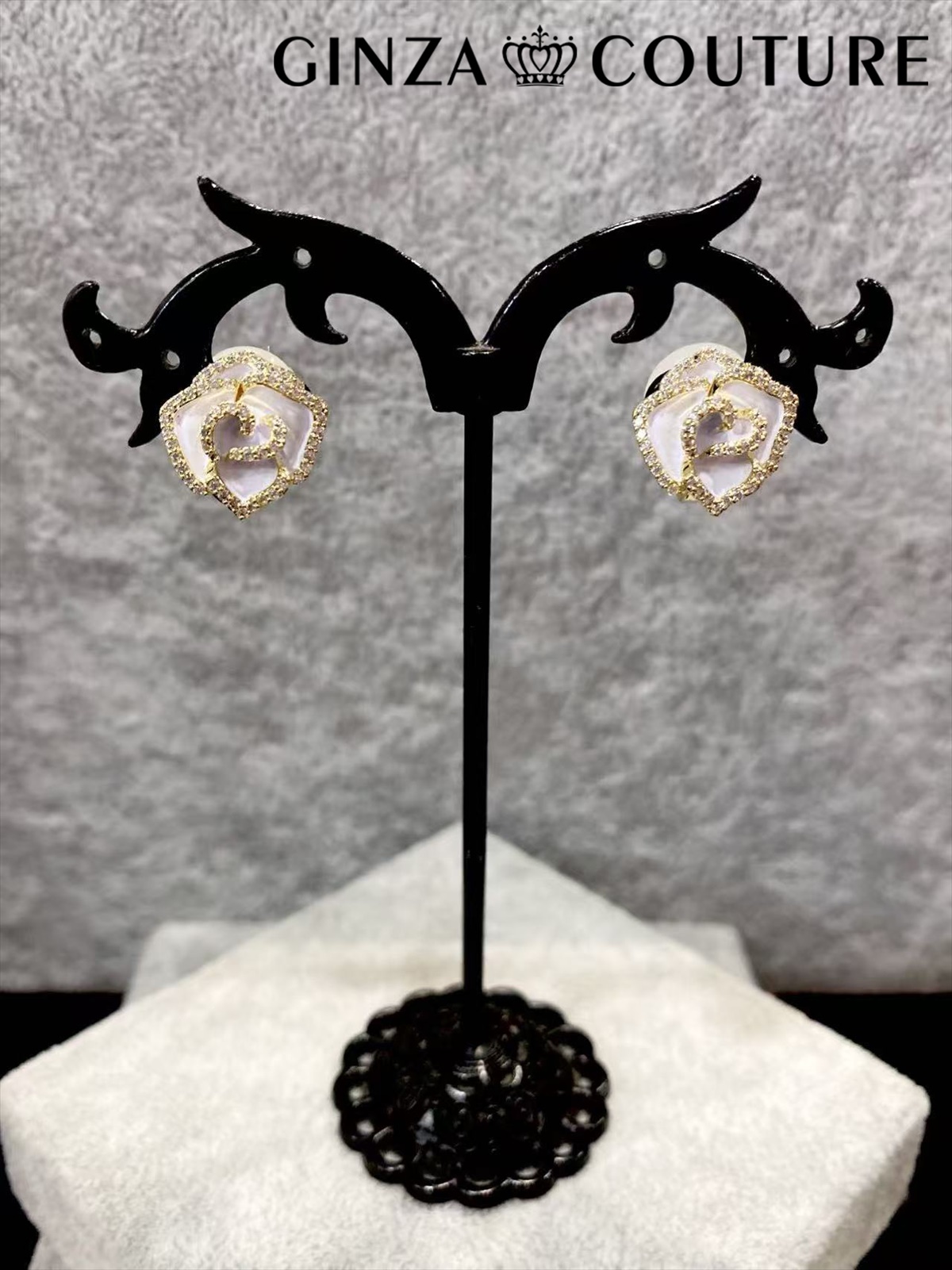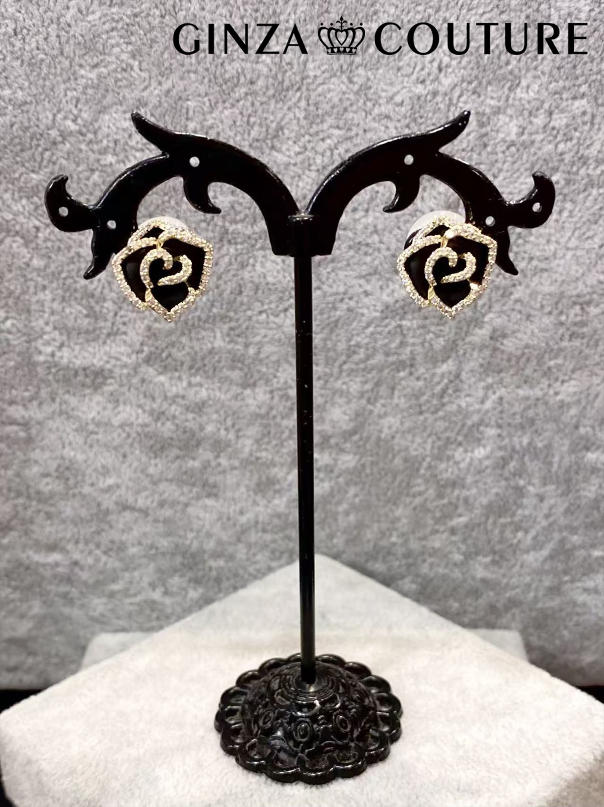 エレガントなフラワーモチーフにラインストーンが輝くイヤリング♡
