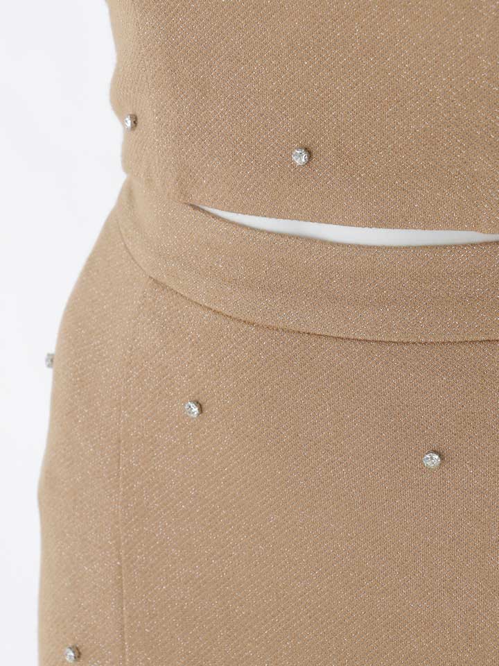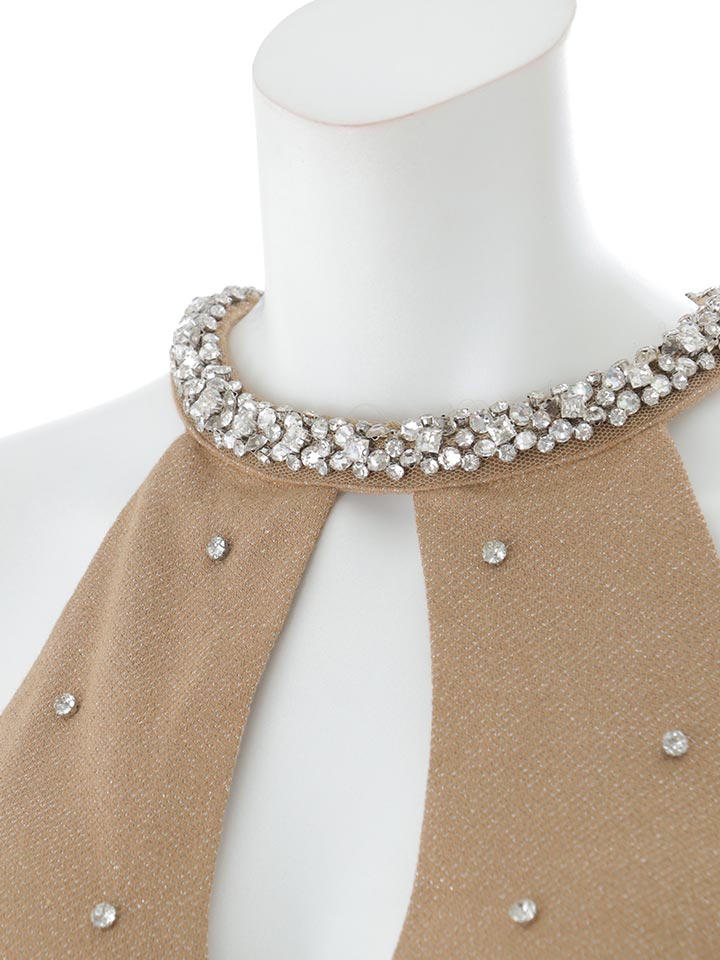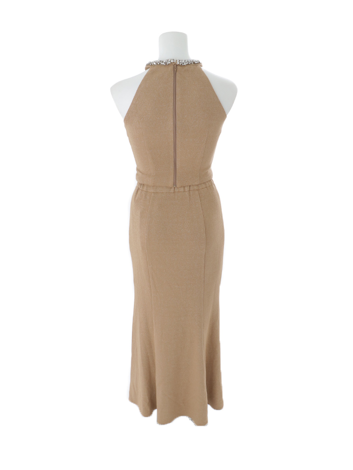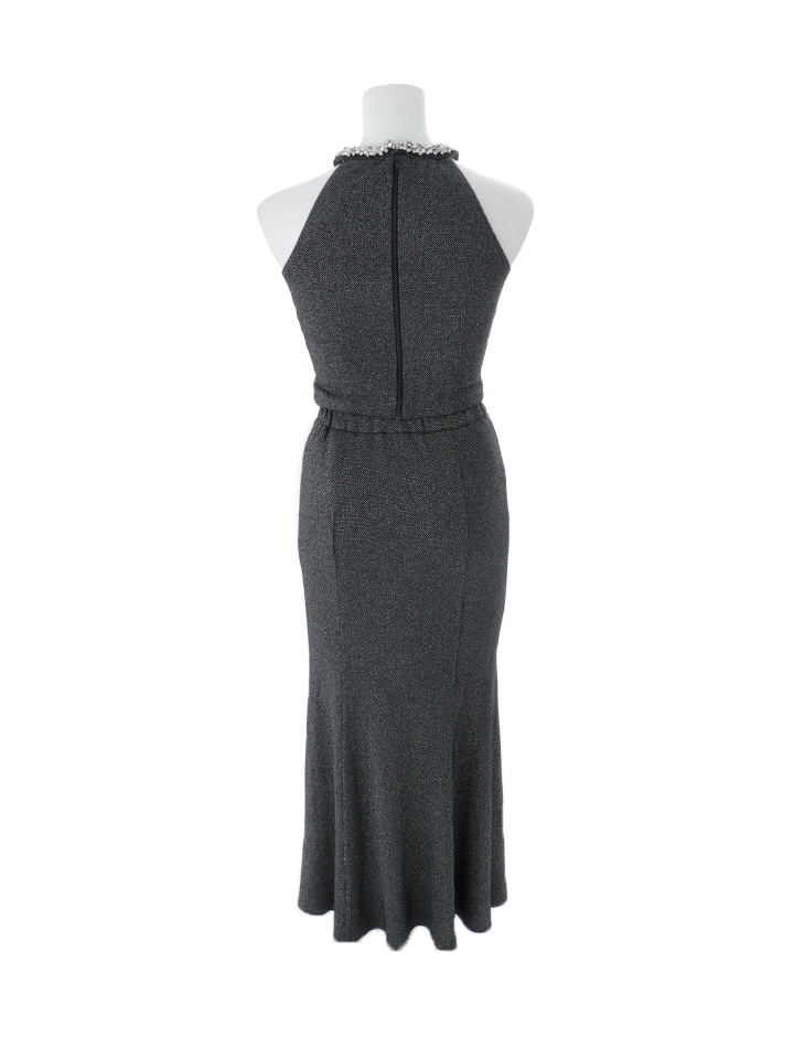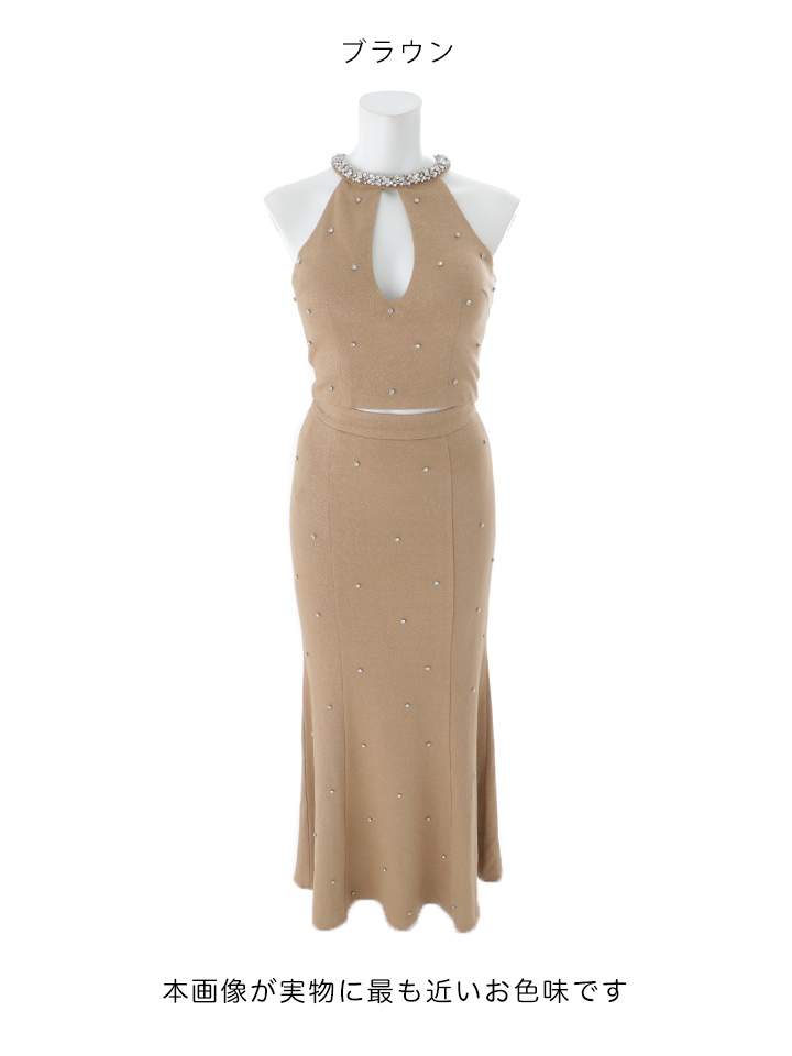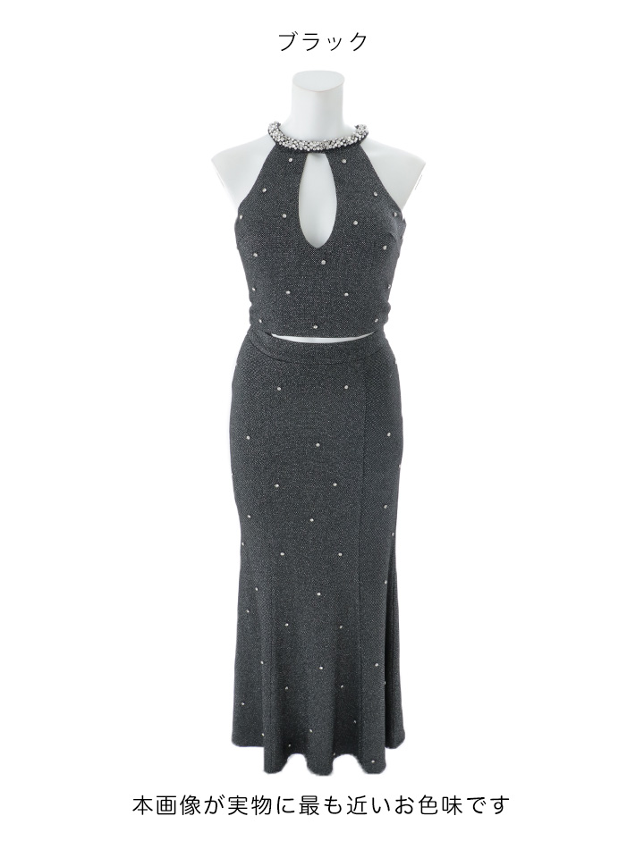 ビジューの輝きが華やかさを添えるロング丈のセットアップドレス。