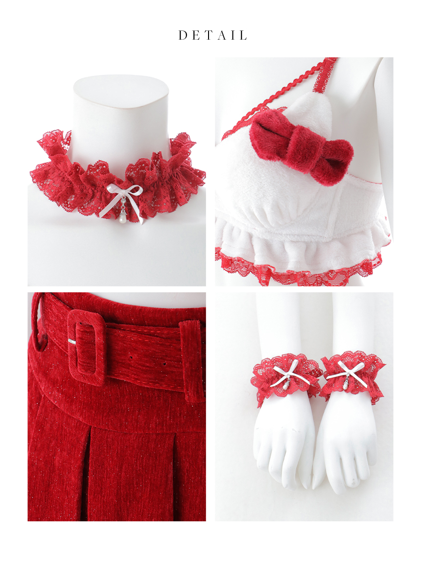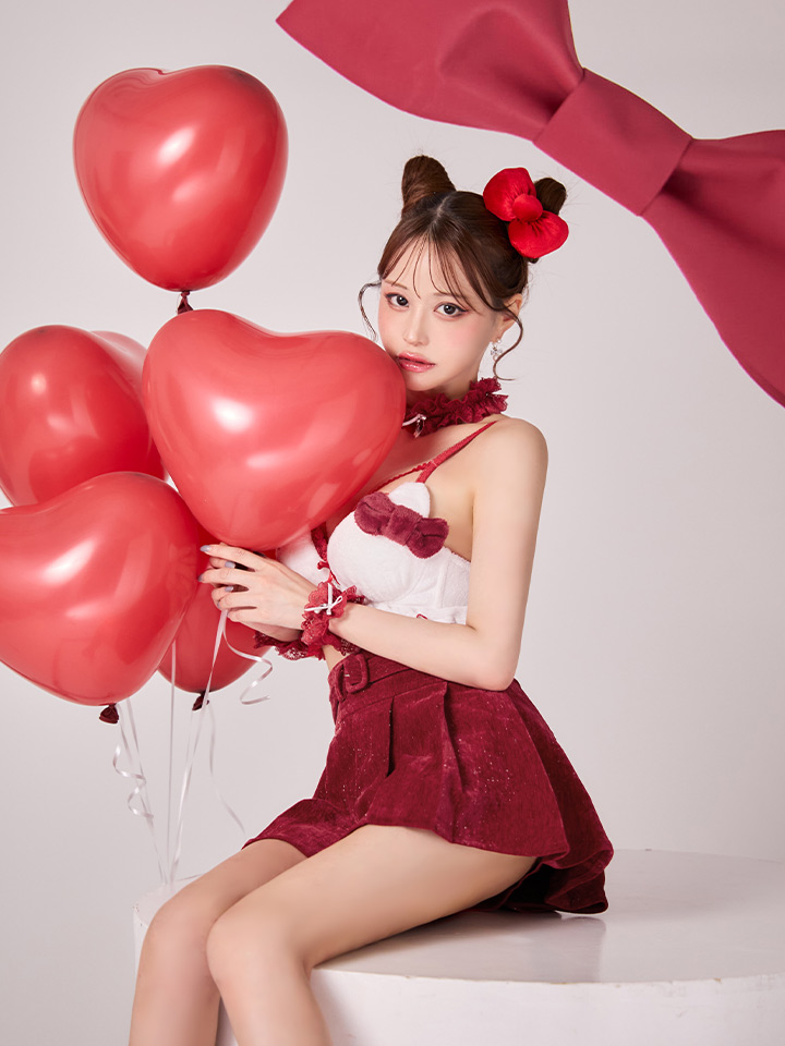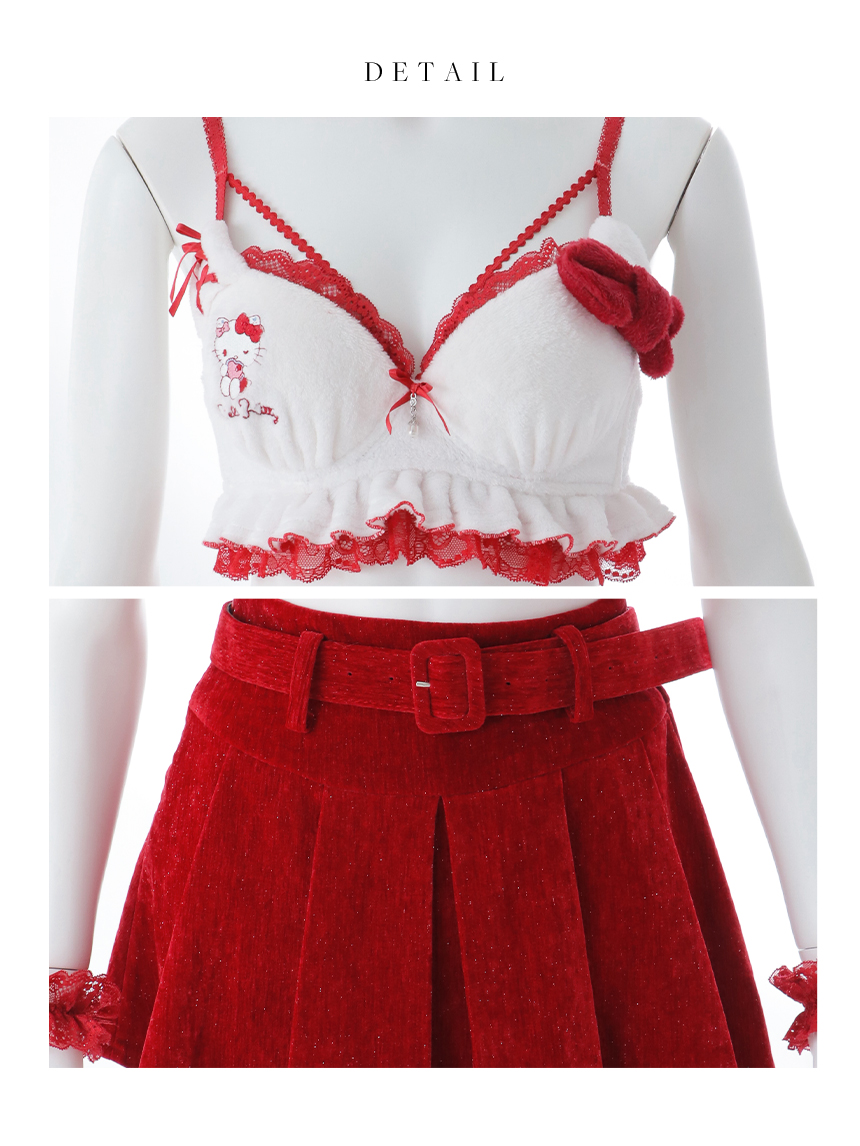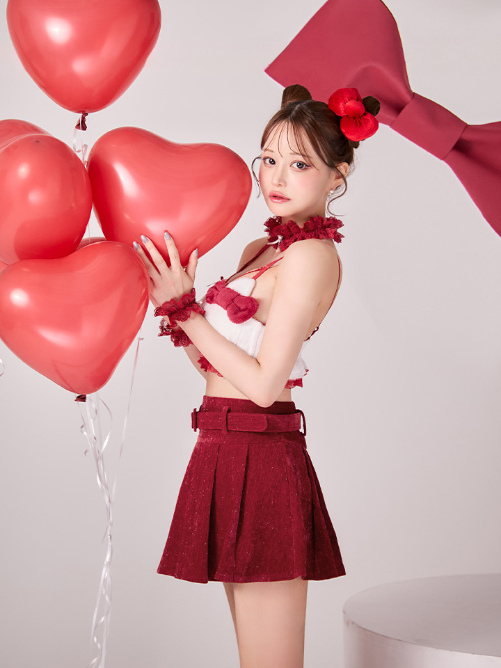 ホワイト レッド 白 赤 胸盛り セットアップ キャミソール プリーツ ベルト
