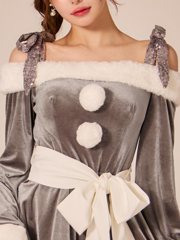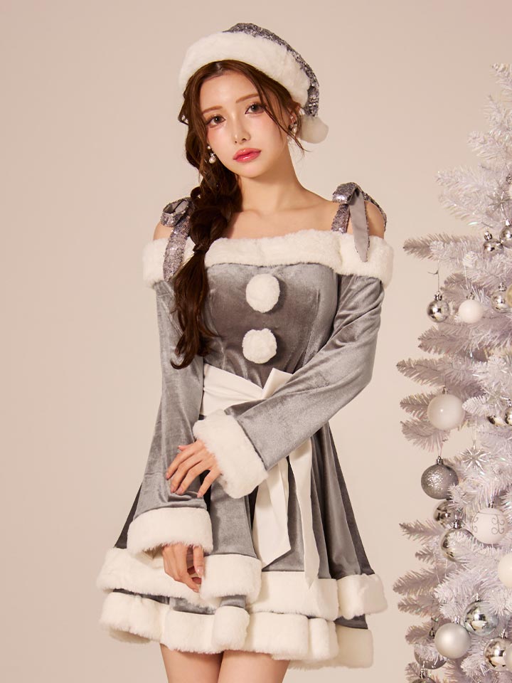 【sugar nine サンタコス 4点セット】【XS-XLサイズ/8カラー】グリッターリボン2段フレアサンタコスプレ[OF01] [SS-7150-SB-GY-25MM]