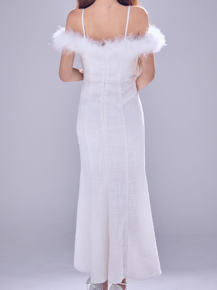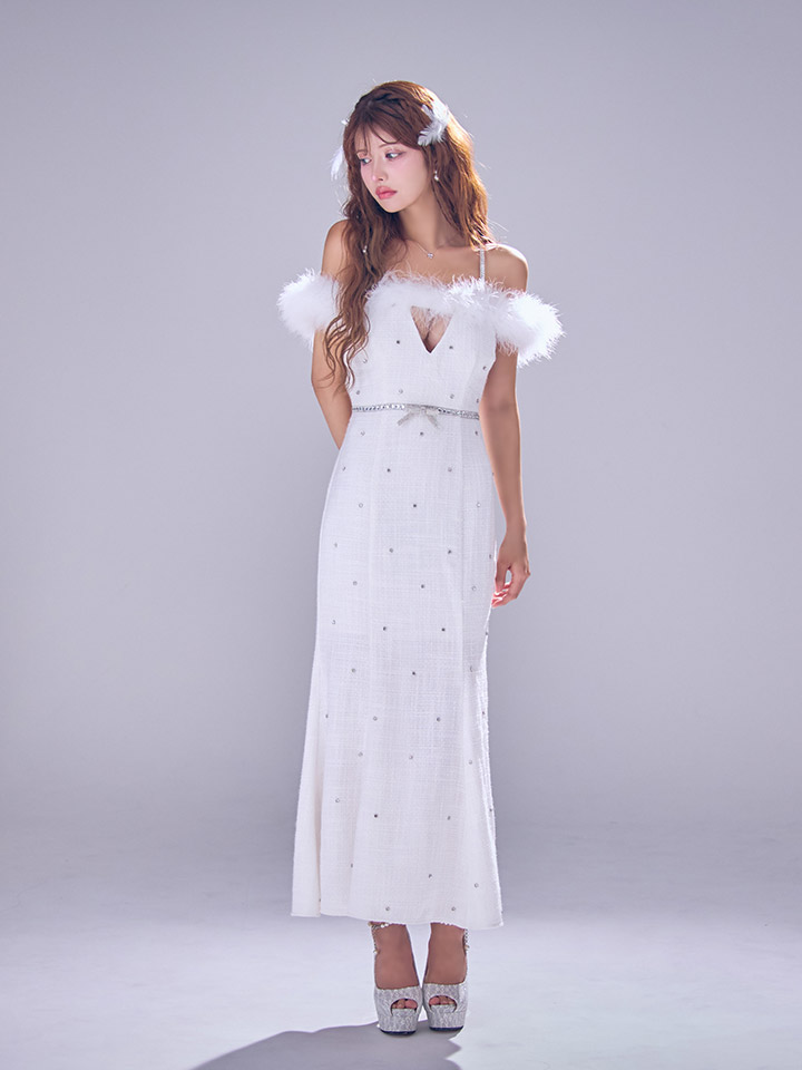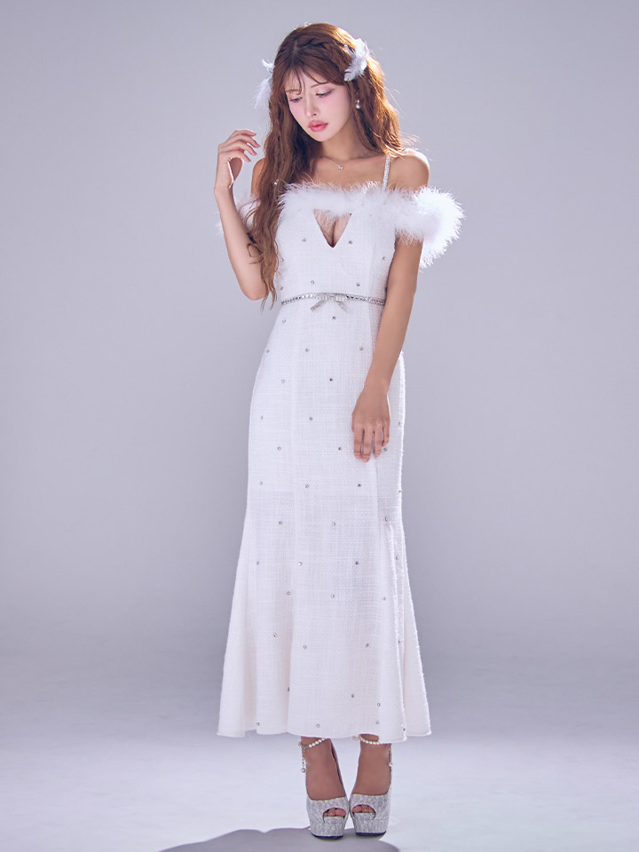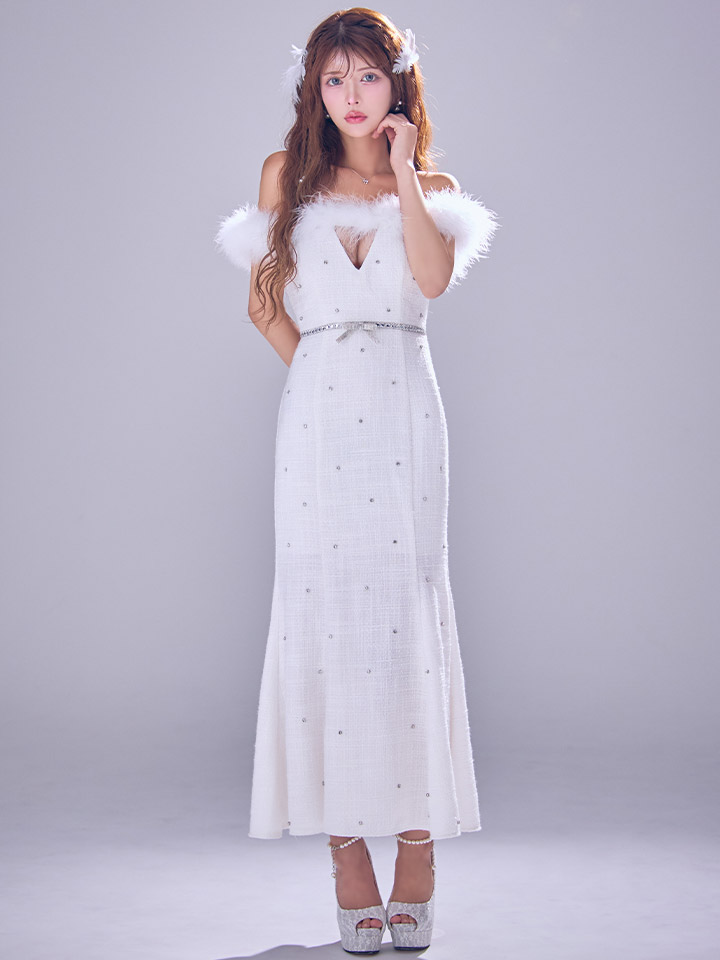 #ホワイト #ネクスト銀座 ゆめ #ロング丈ドレス #ツイード #キャミ #オフショルダー #谷間見せ(魅せ) #背中見せ(魅せ) #マーメイド #スイート・可愛い(かわいい)系 #JEWELSトレンド #まりん着用