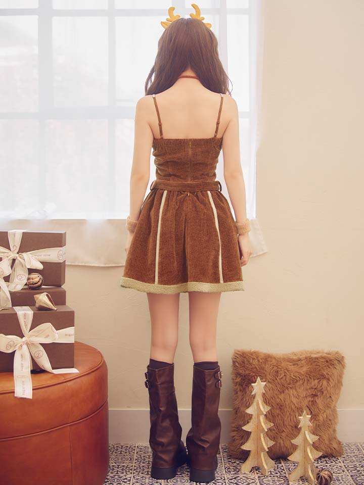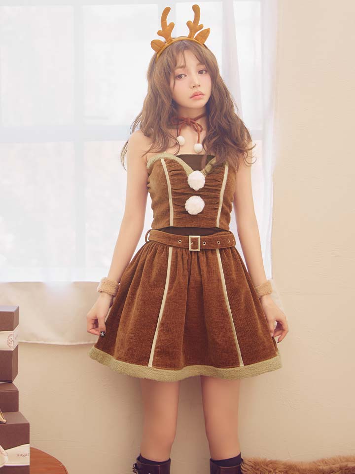 【即日発送】【送料無料!】【サンタ】ボアセットアップベルトトナカイコスプレ【コスプレ7点セット】【S-Lサイズ/1カラー】[OF04] [SS-168-YN-dzw-BR-25PO]