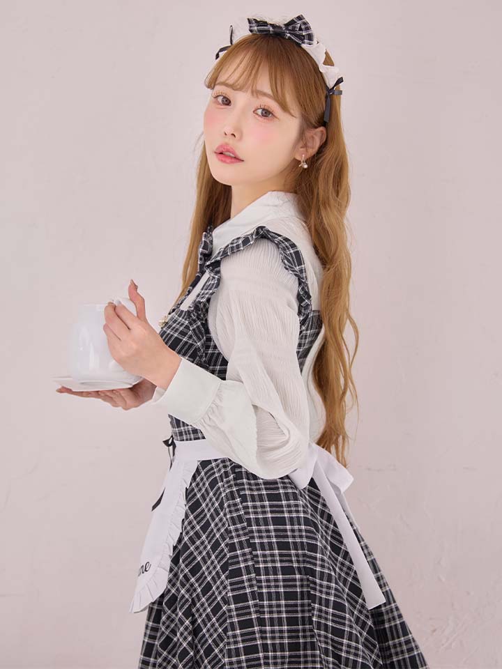 制服要素を取り入れた襟元リボンが可愛いブラックチェックメイドコスプレ☆
