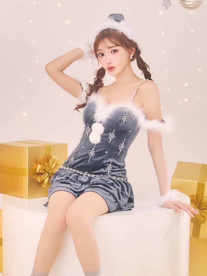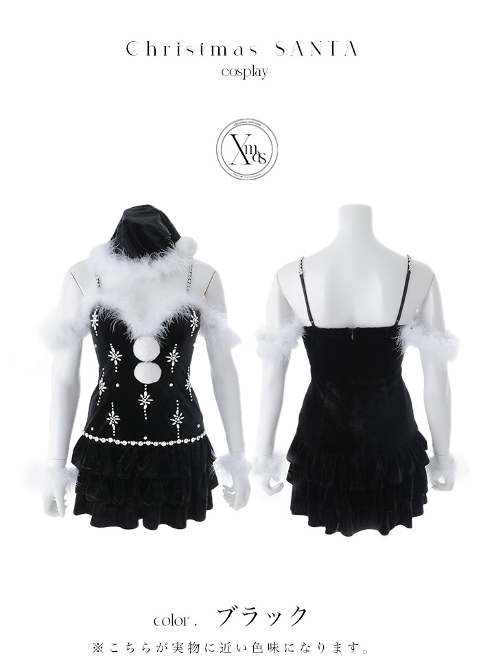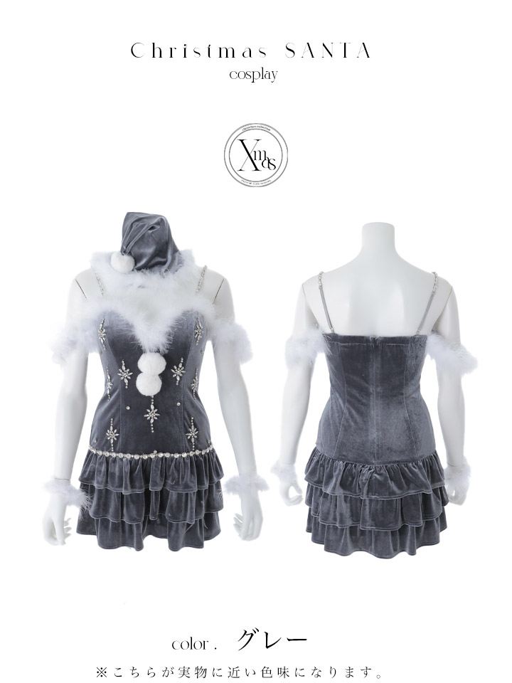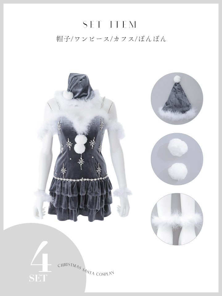 【即日発送】【送料無料!】【サンタ】 スノーフレークビジューフレアサンタコスプレ【コスプレ4点セット】【XS-Lサイズ/3カラー】[OF01] [SS-195-SB-dzw-GY-25AS]