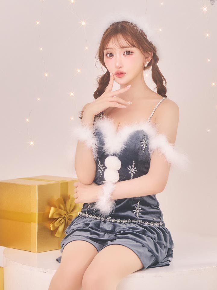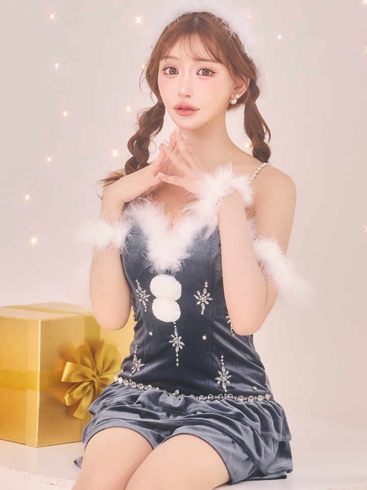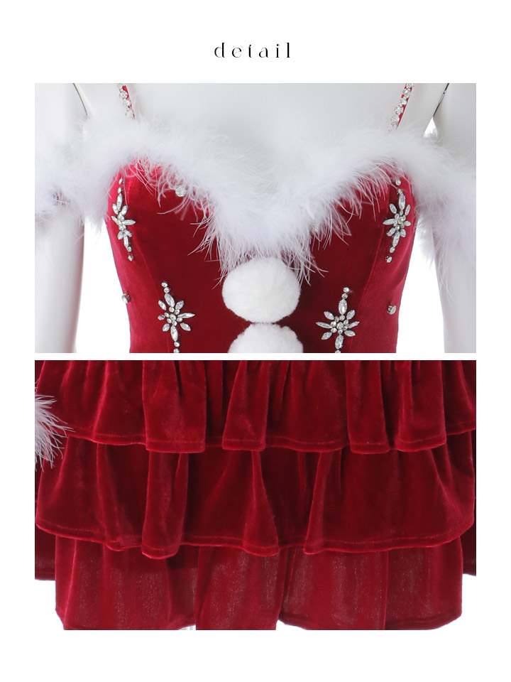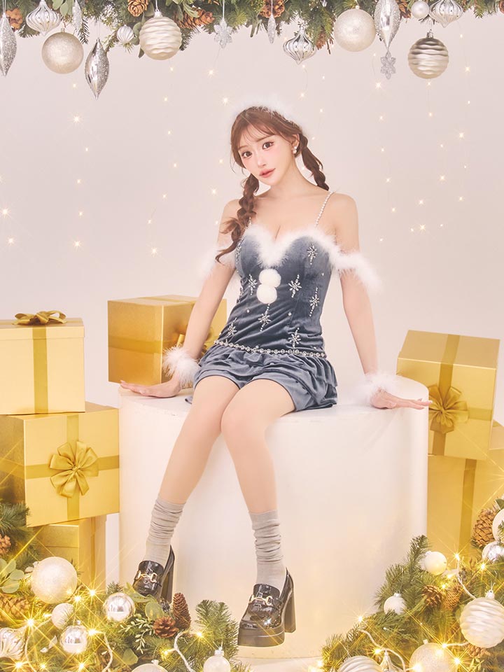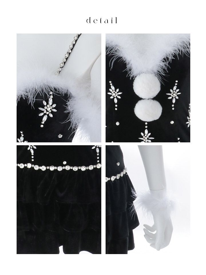 【即日発送】【送料無料!】【サンタ】 スノーフレークビジューフレアサンタコスプレ【コスプレ4点セット】【XS-Lサイズ/3カラー】[OF01] [SS-195-SB-dzw-GY-25AS]