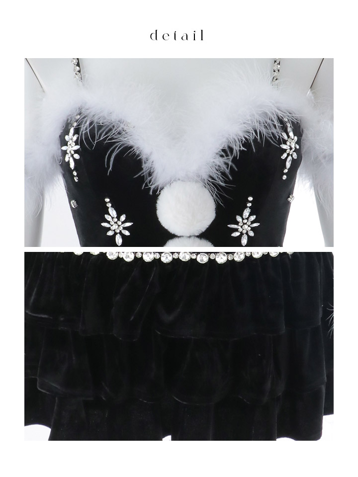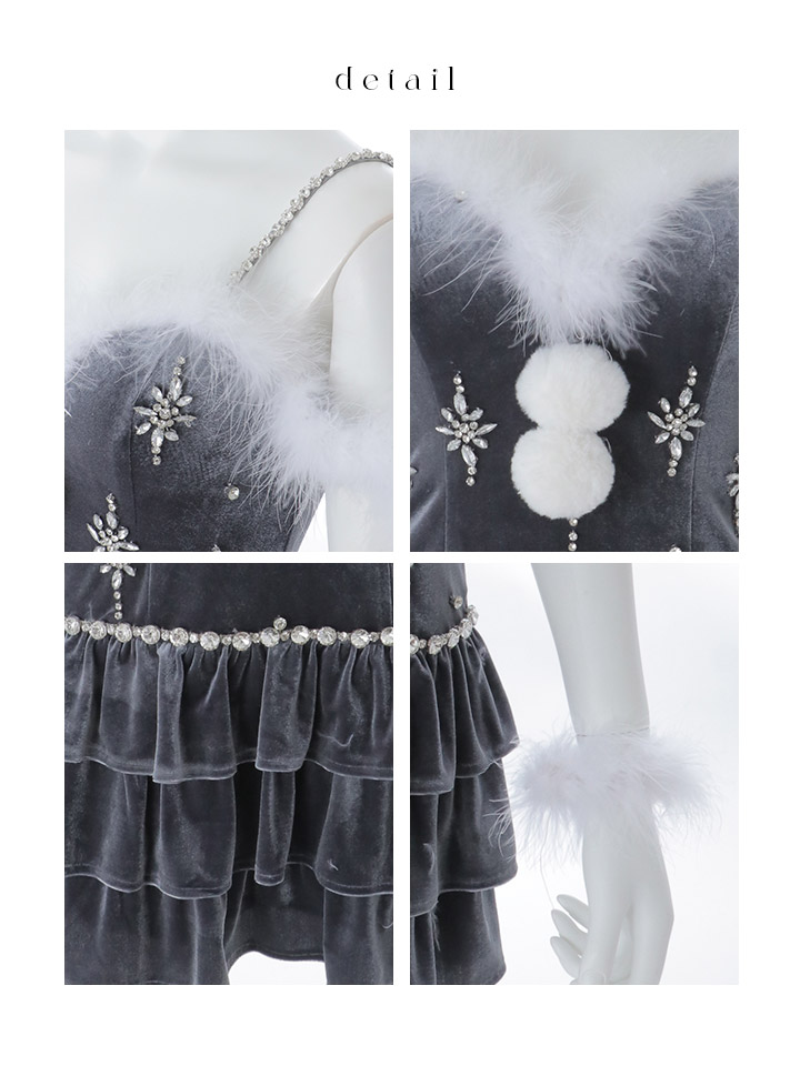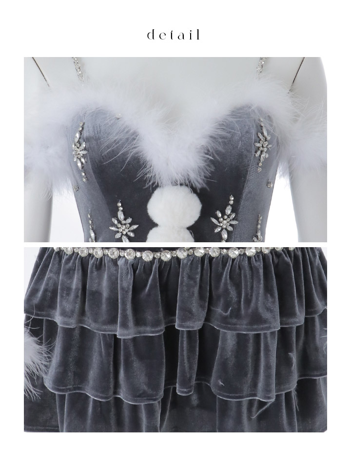 グレー 灰色 スカート ミニスカート フレアスカート 胸盛り ファー 肩出し