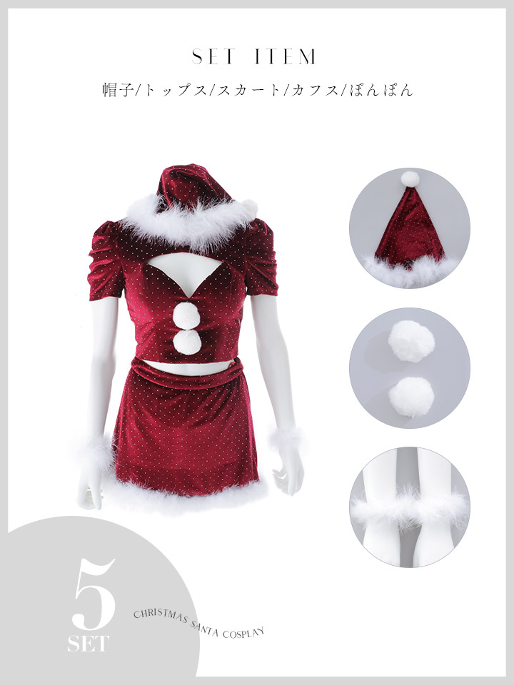 【ノベルティ対象】【予約 / 11月上旬発送予定】【送料無料!】【サンタ】パフスリーブストーンセットアップサンタコスプレ【コスプレ5点セット】【XS-XLサイズ/2カラー】[OF03]