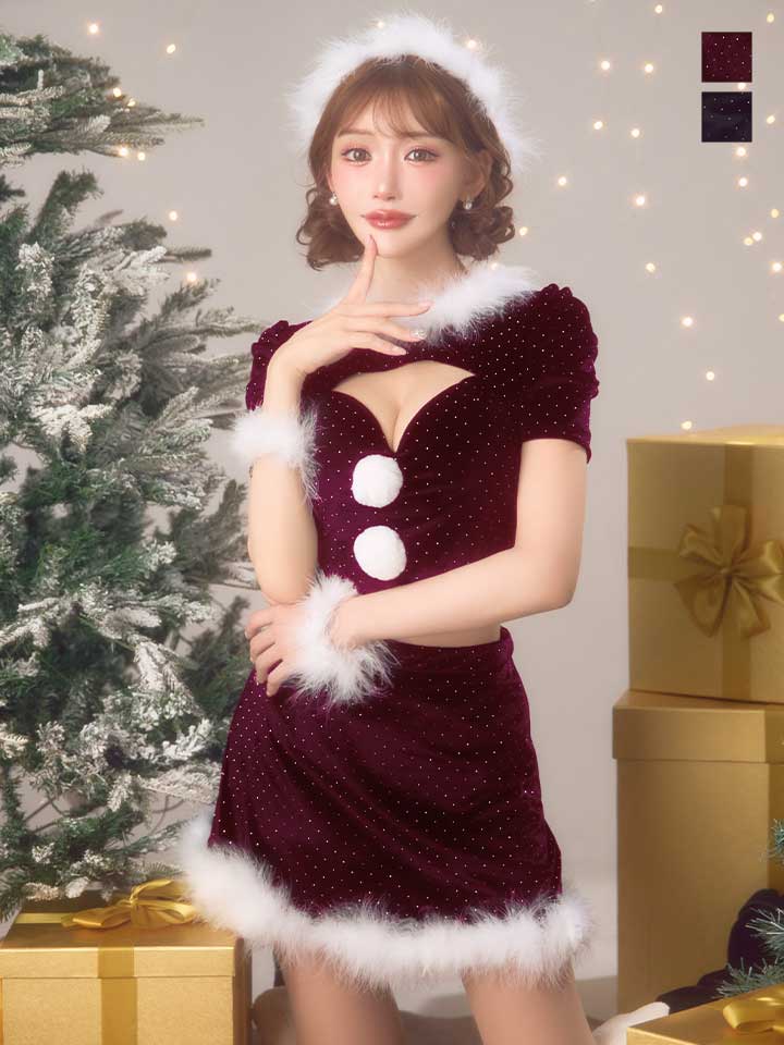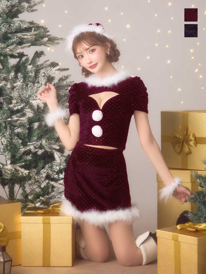 キラキラと輝くストーンを散りばめたセットアップサンタコスプレ♥